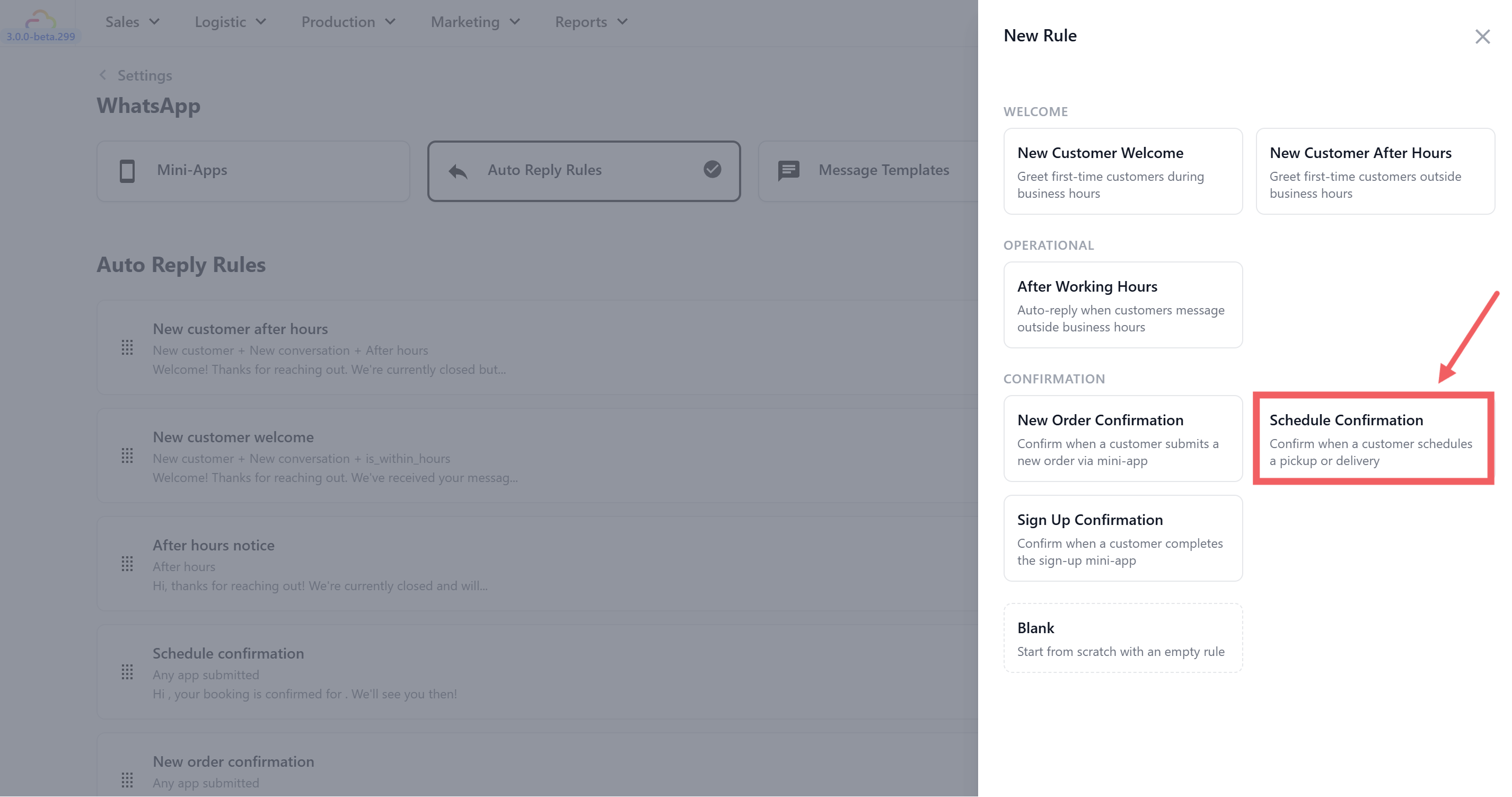 When a customer books a pickup or delivery through your WhatsApp Mini App, they want to know the date and time are locked in. This rule sends an instant confirmation with their scheduled details — so they can plan their day and your team has one less message to send manually.