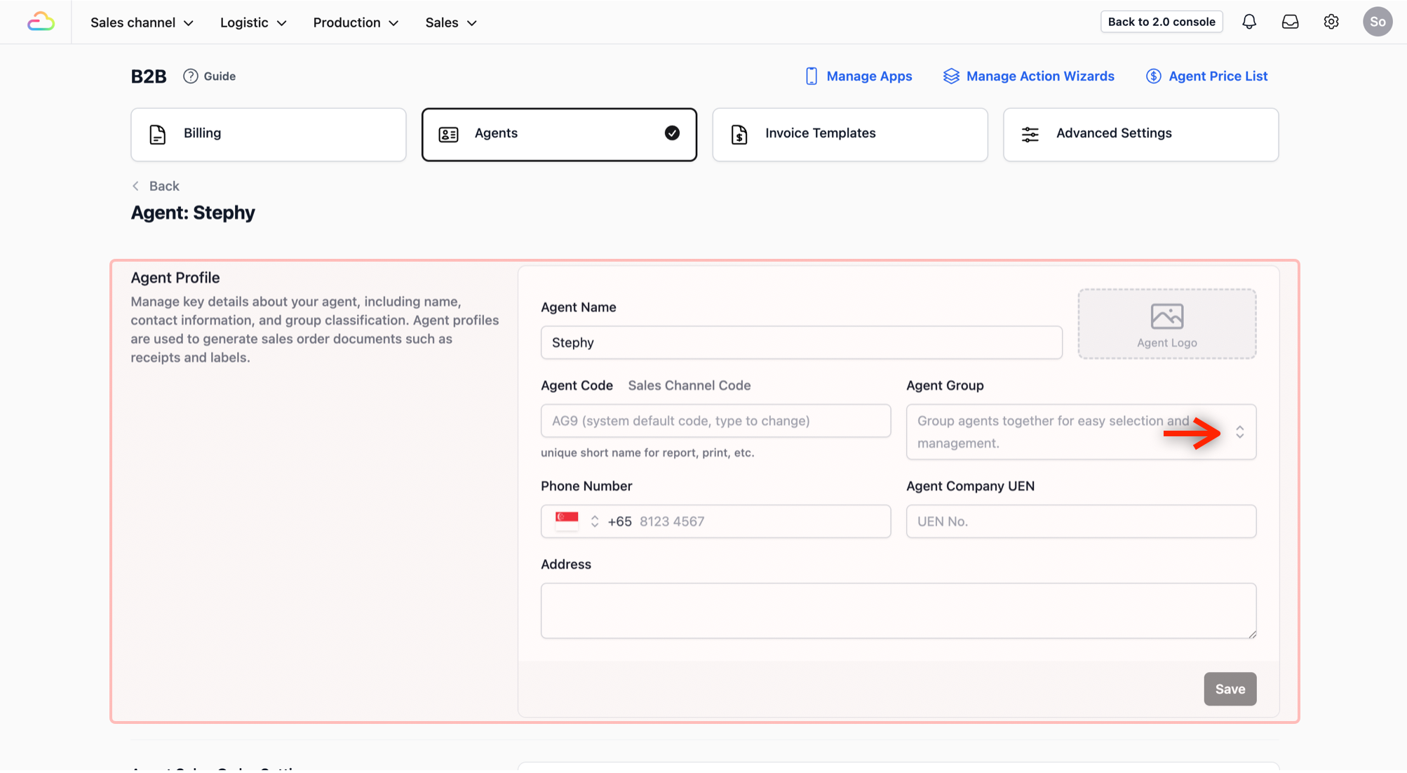 Everything related to your agents is managed within the B2B section of your system.