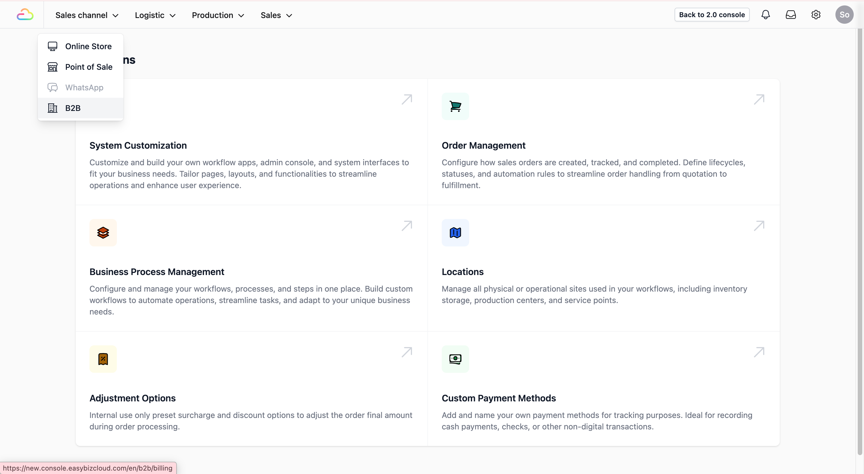 - Navigate back: On the top navbar, click on Sales Channel and select B2B from the dropdown menu.