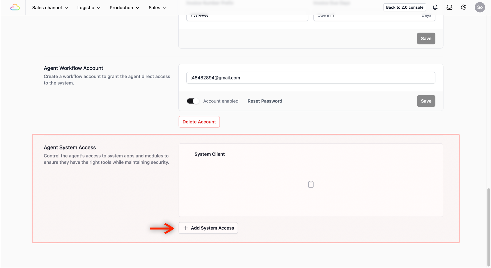 - Find Access Settings: Scroll all the way down to the Agent System Access section and click the + Add System Access button.
