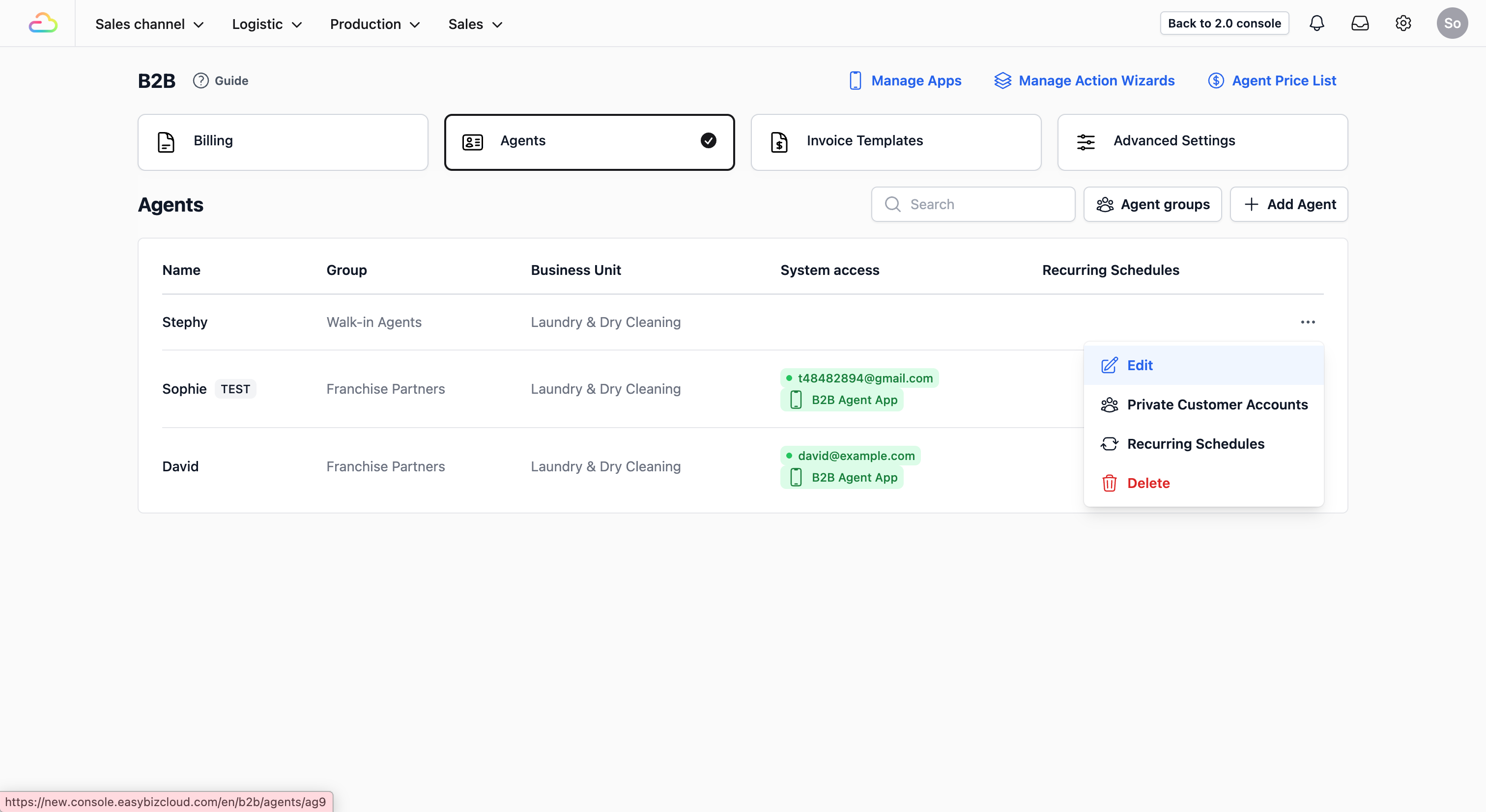 - Select Your Agent: Click on the Agents Tab. Find the agent you want to set up, click the ••• at the end of their row, and select Edit.