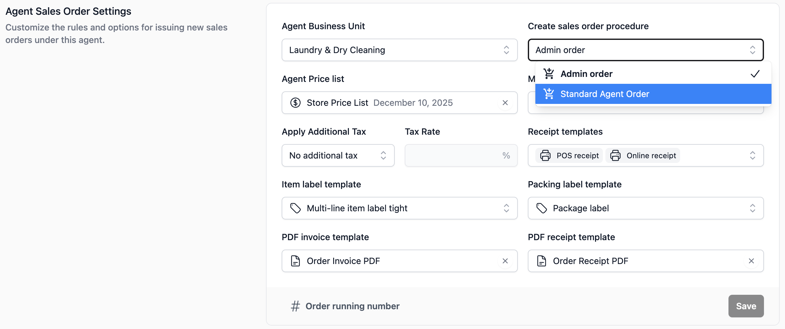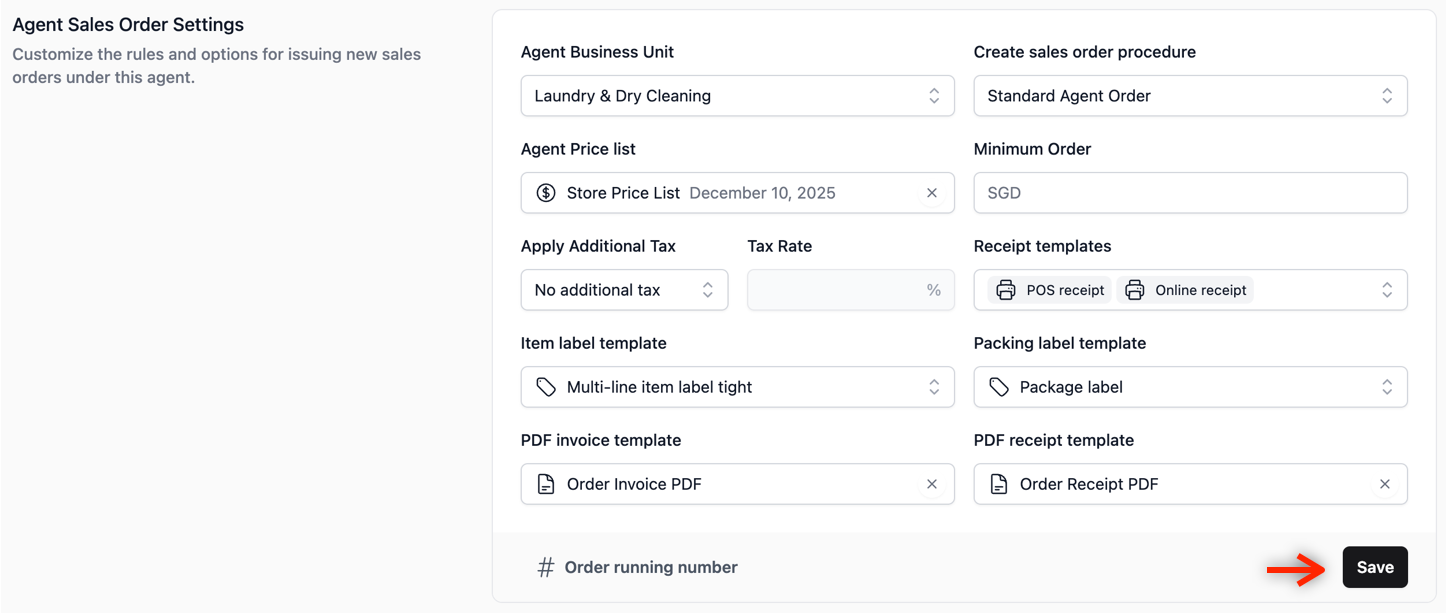 - Scroll down the profile page until you locate the Agent Sales Order Settings section.