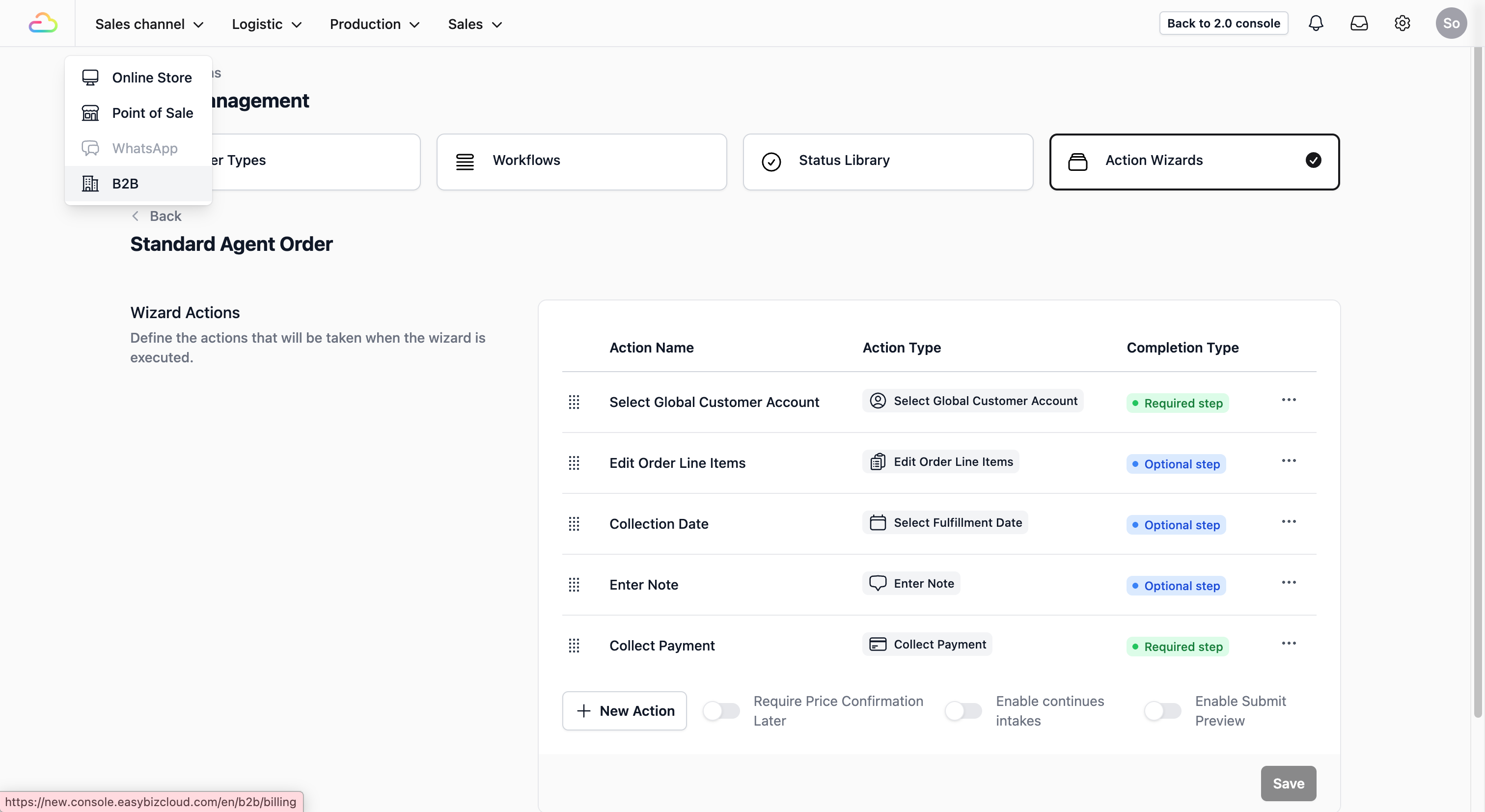 - If you are already on the B2B page: Simply click the Manage Action Wizards button.