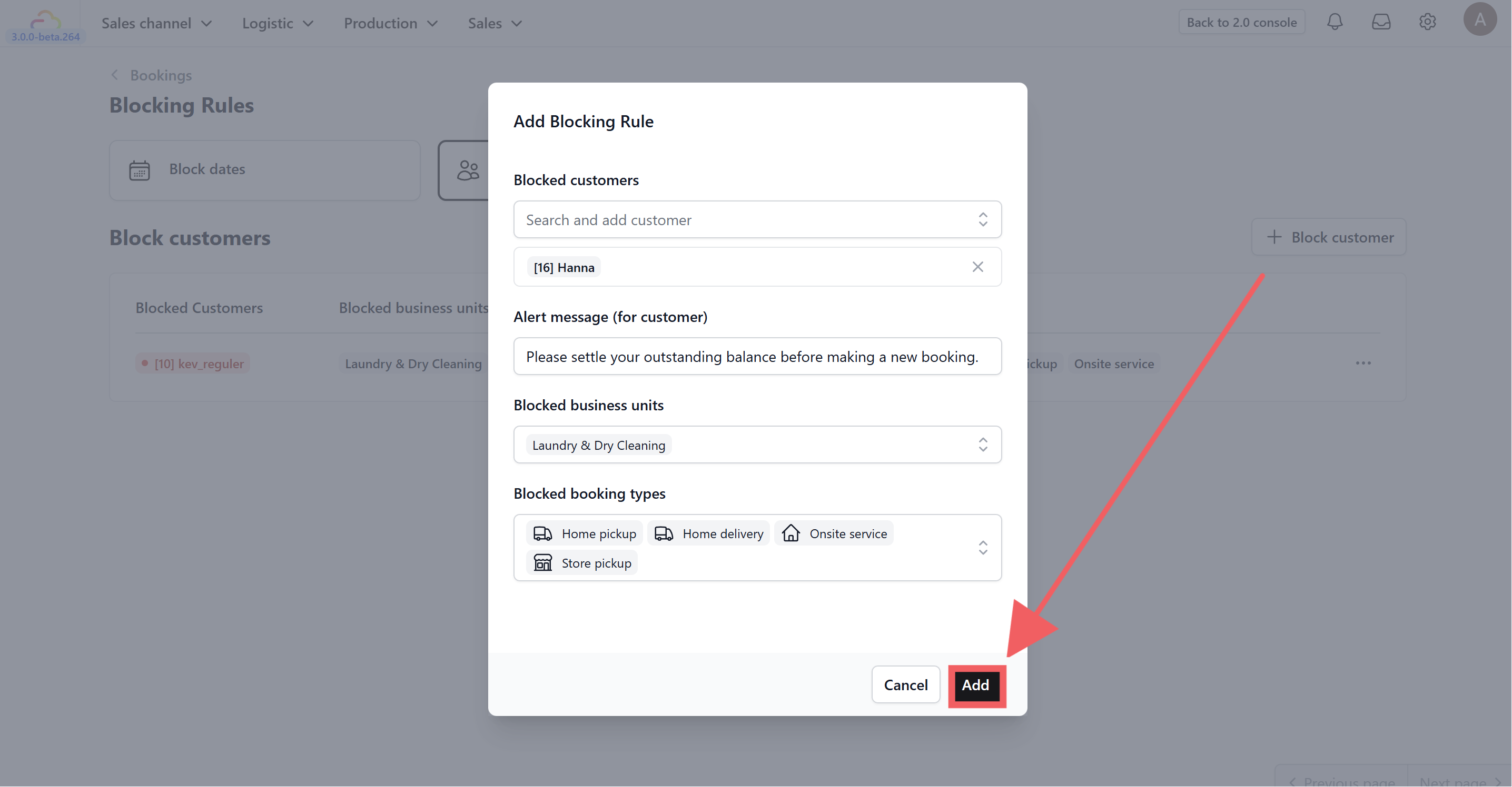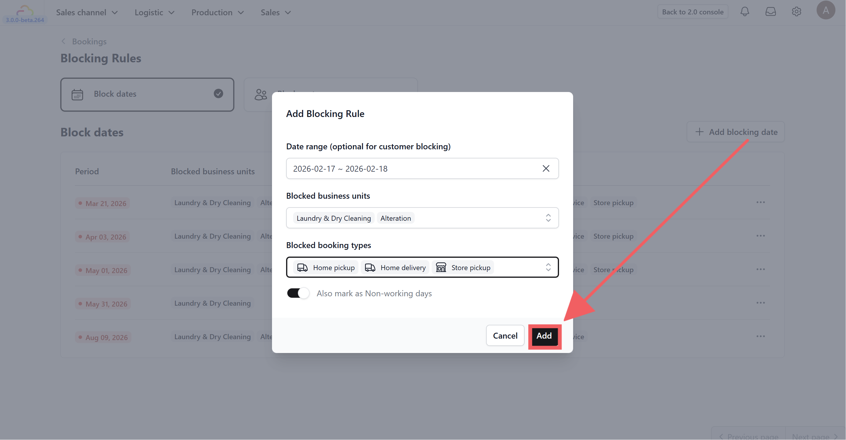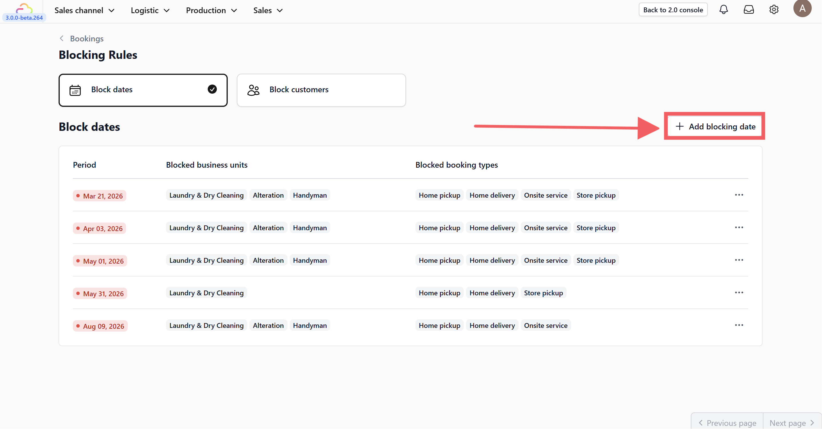 Blocking Rules help you maintain operational control by preventing bookings that cannot be fulfilled. Instead of manually managing exceptions or correcting bookings after they are created, you can proactively restrict bookings based on dates or customers.