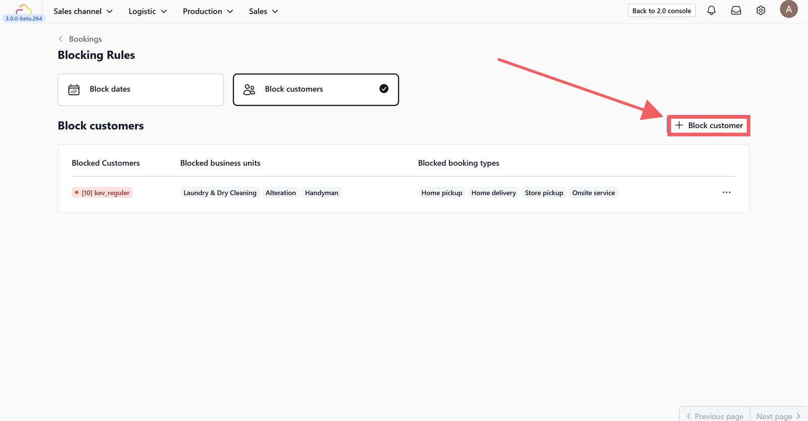 • 3.1 Blocked customers: Select one or more customers to block