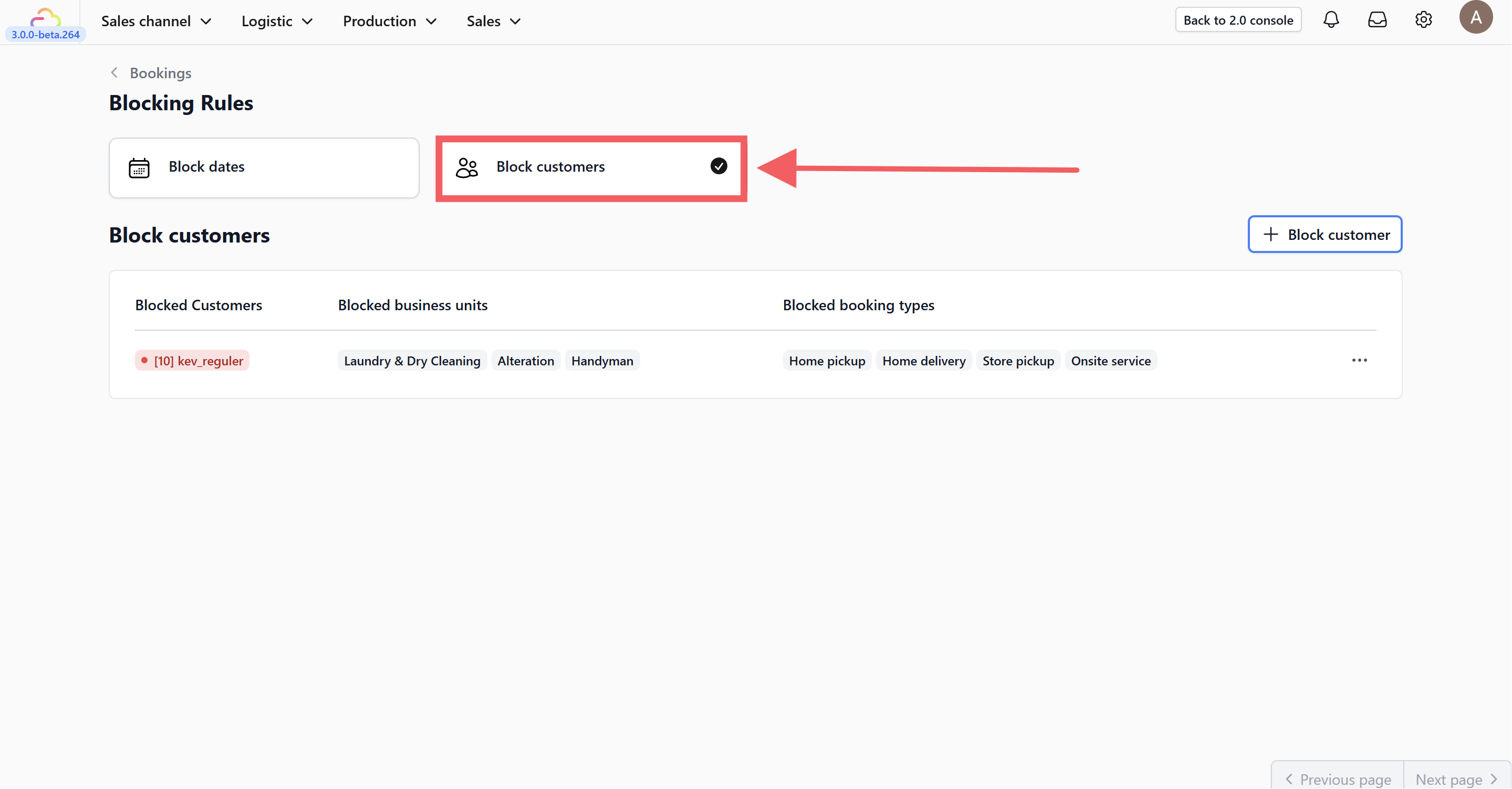 Blocking Customers prevent selected customers from creating new bookings. This is useful for managing exceptional cases such as account reviews, policy enforcement, or restricted access.