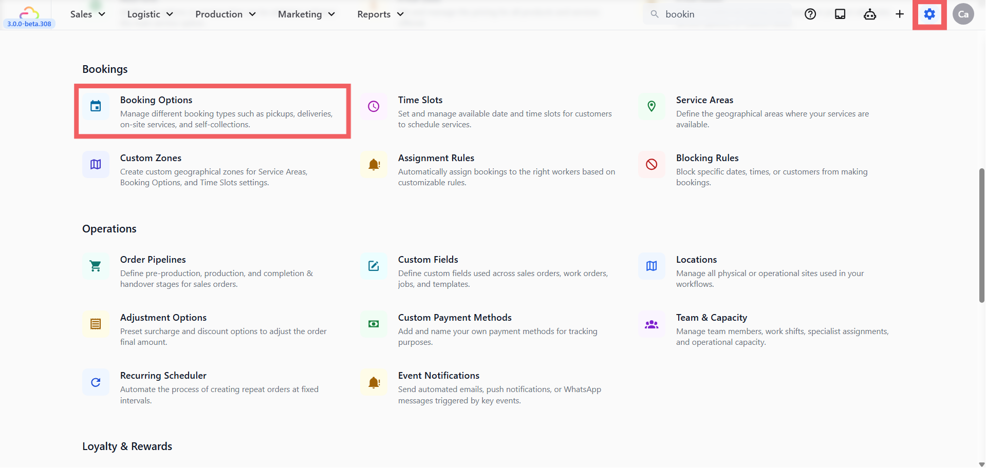 - Under the Bookings section, click Booking Options.