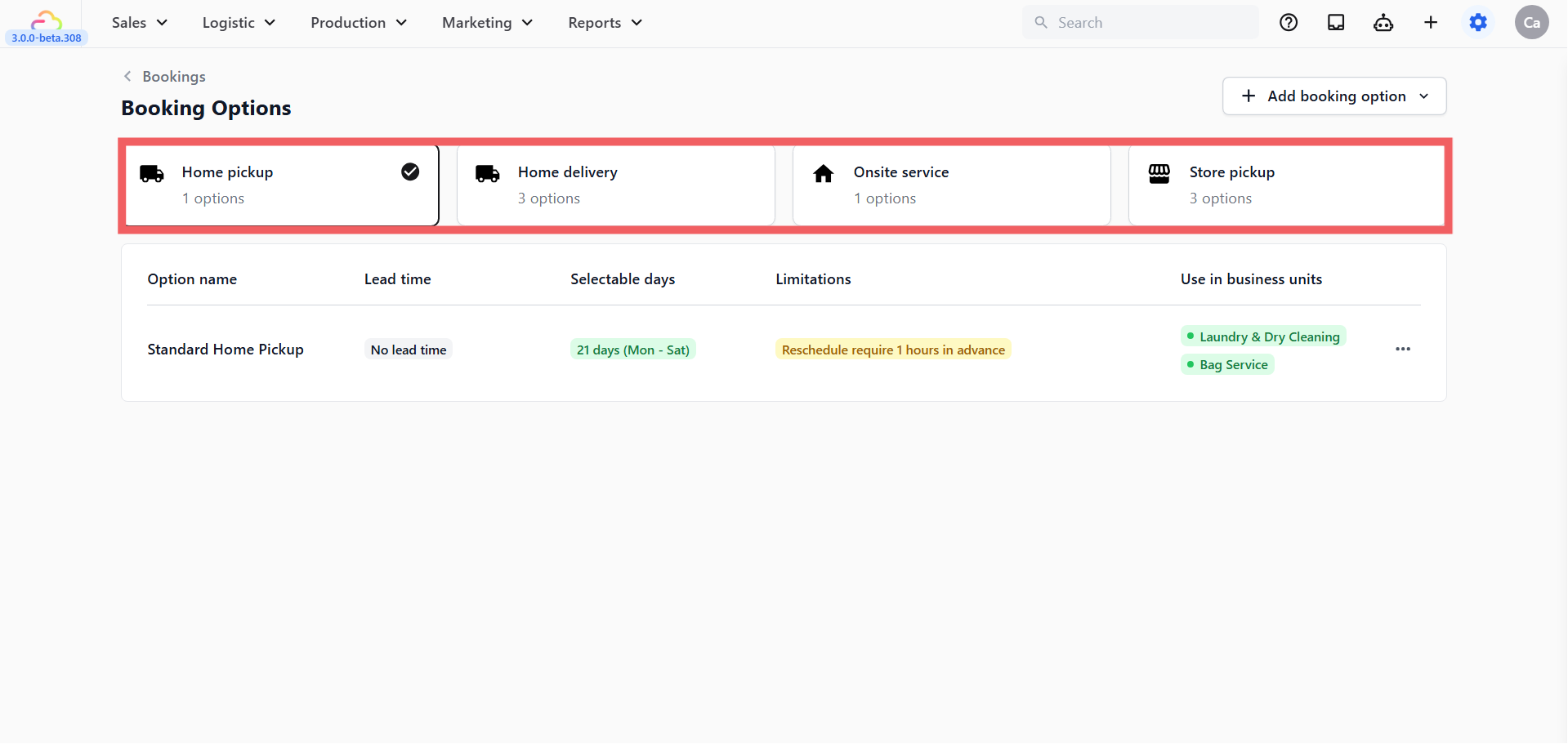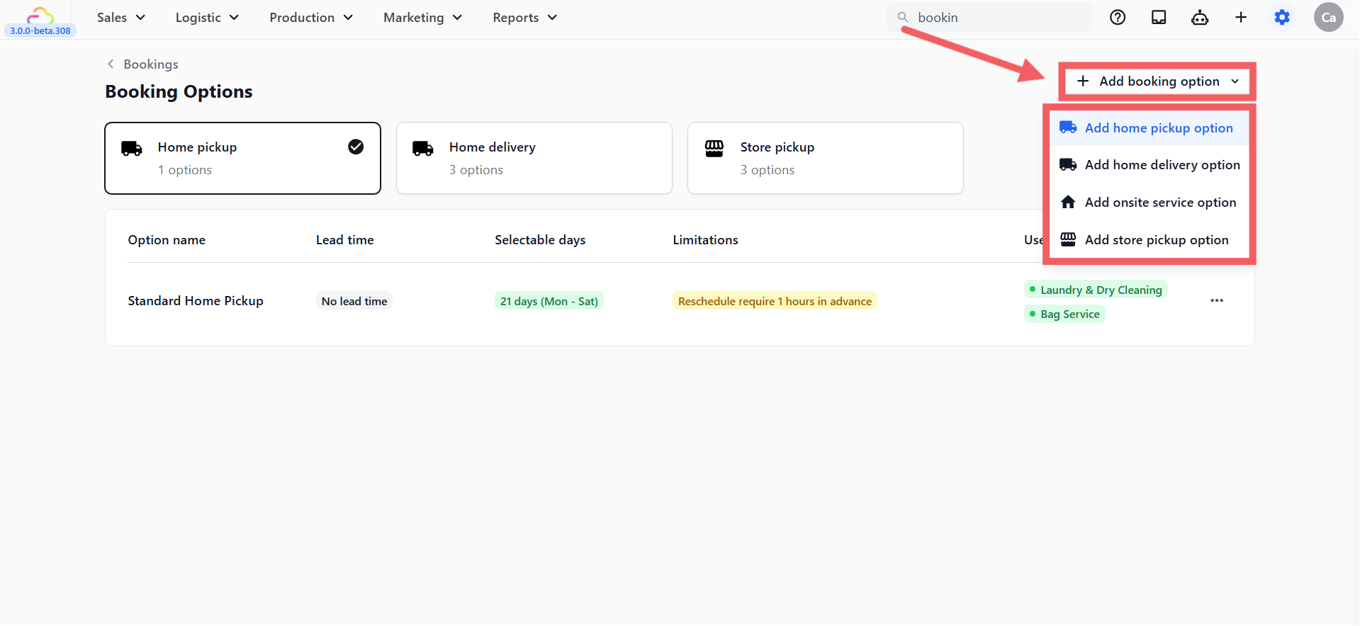 - Click + Add Booking Option.