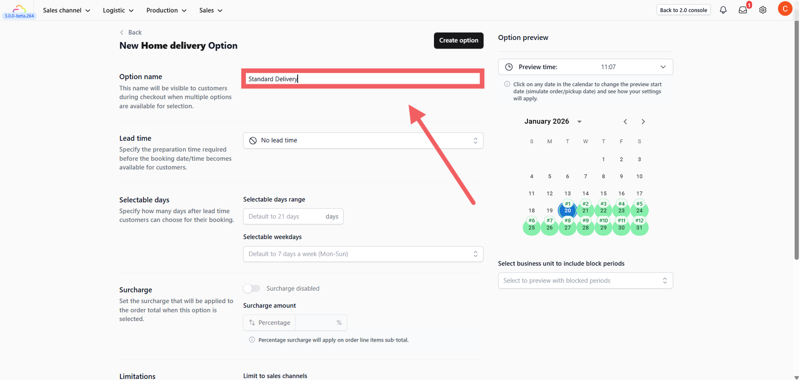Option Name: Enter a clear name visible to customers (e.g., "Express Delivery" or "Standard Pickup").