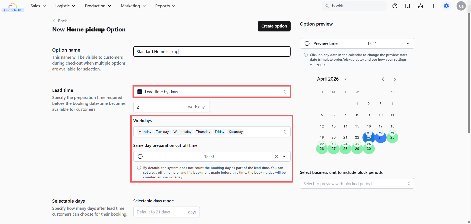 Now that your booking option type, name, and lead time are configured, continue to [Booking Options: Surcharge, Limits & Rescheduling] to add surcharges, restrict it to specific sales channels, and control whether customers can reschedule.