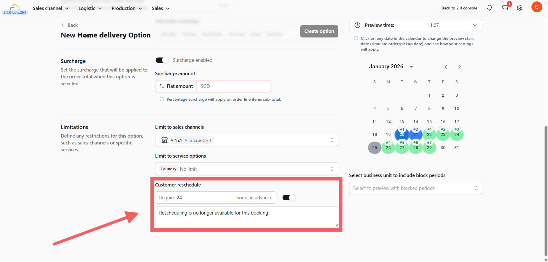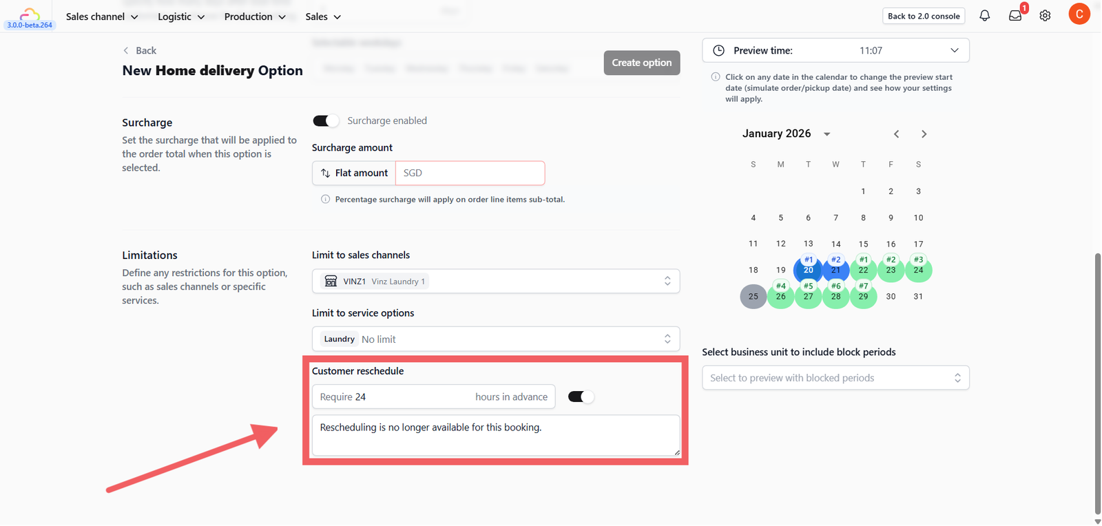 You can also set a message to inform customers why rescheduling is locked (e.g., "Rescheduling is closed 2 hours before pickup")