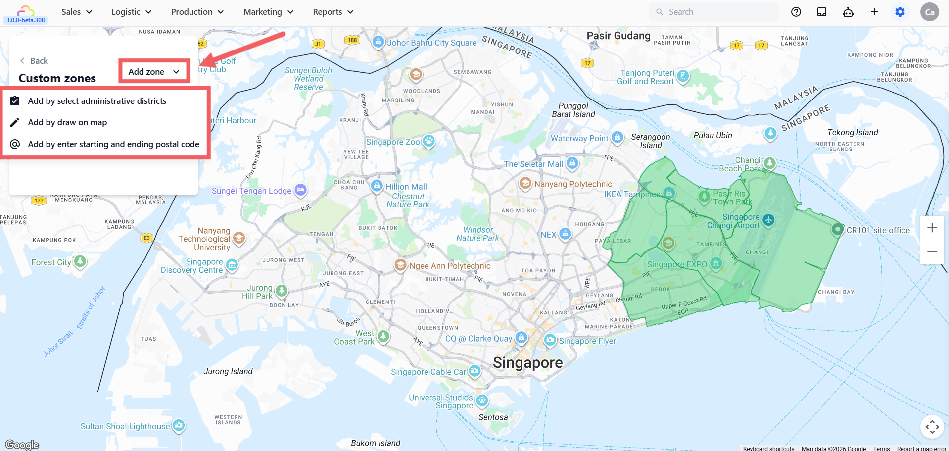 Use Custom Zones only if one area needs different rules from another. You can skip this entire section if every customer is covered by the same rules, the same minimum order, and the same driver.