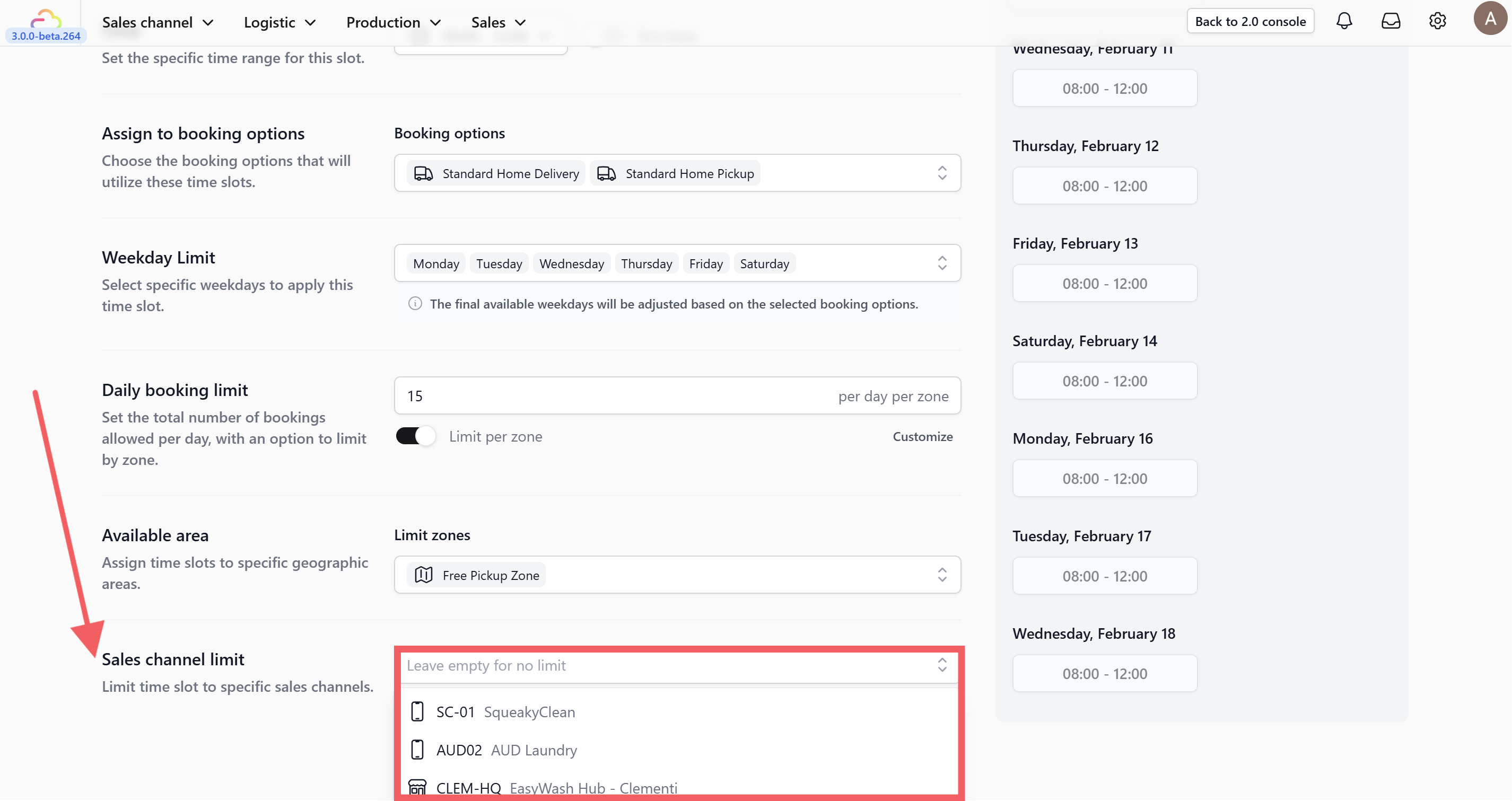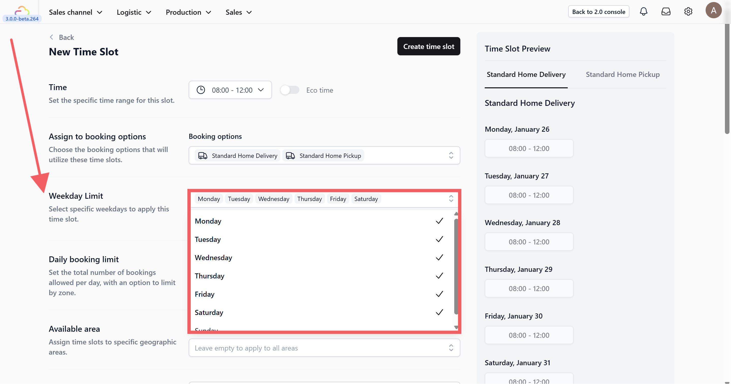 4. Weekday Limit: Choose the specific days of the week this slot is active.