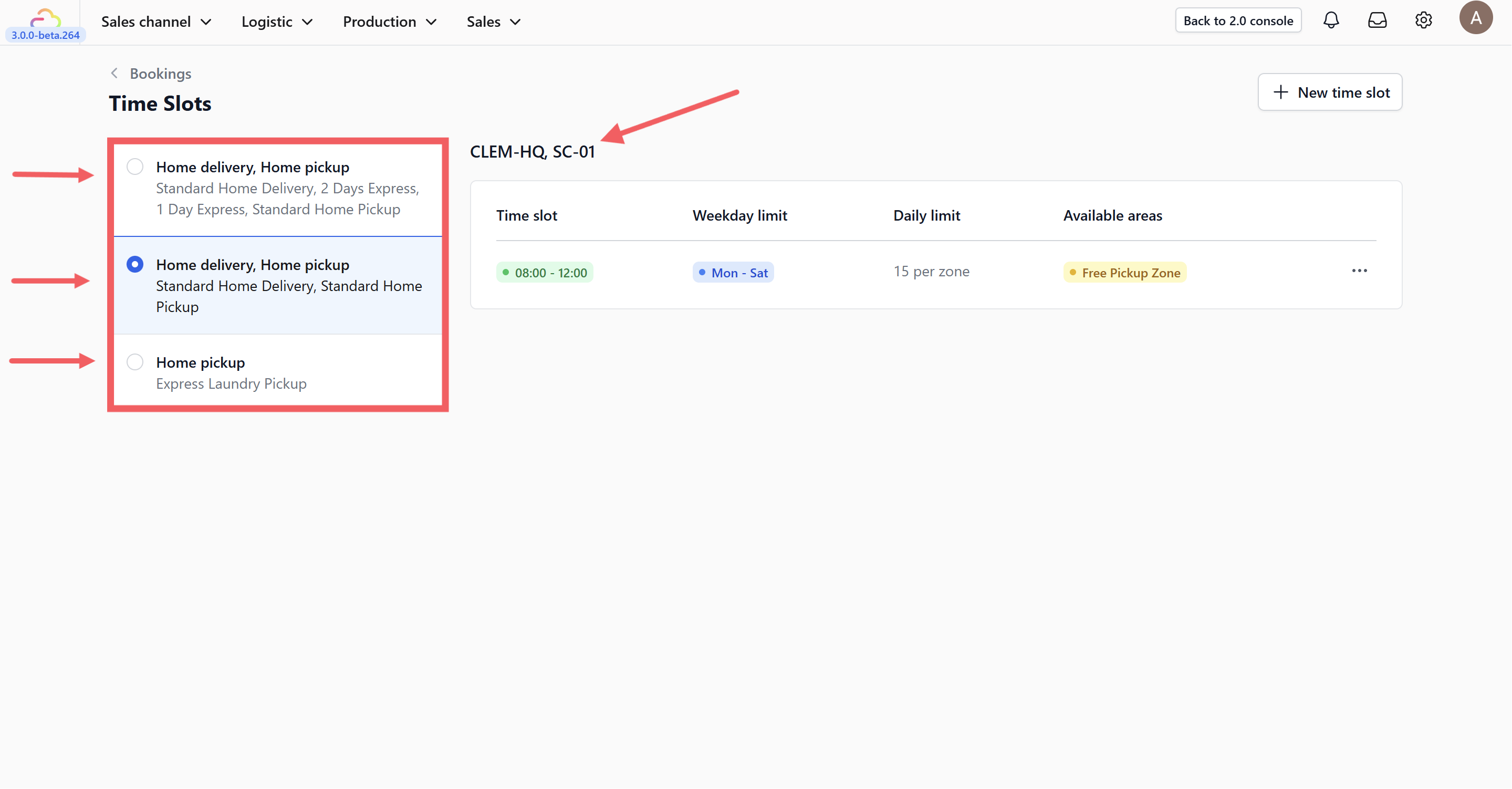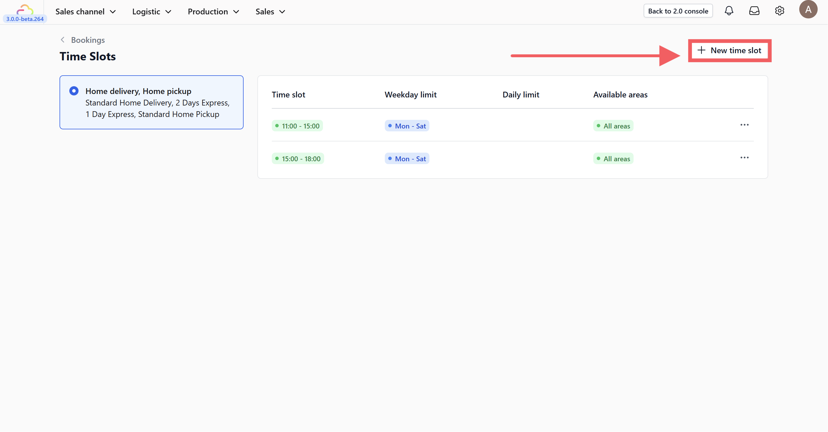 • Manage Areas: Assign these time slots to specific geographic locations (e.g., All areas).
