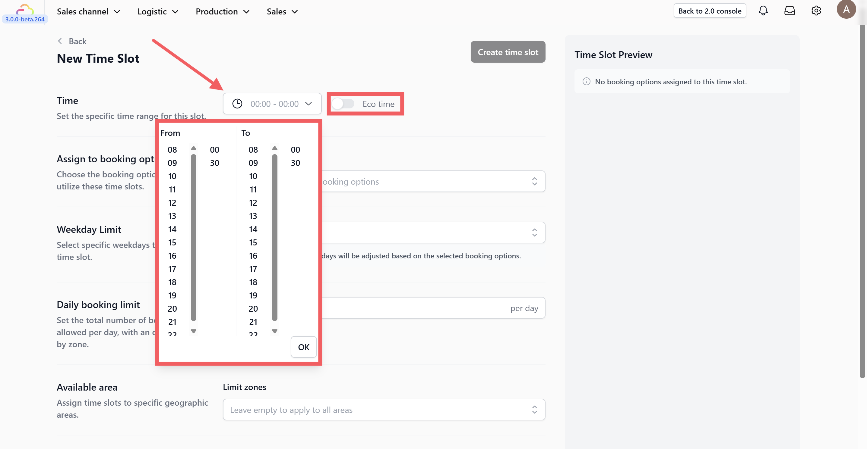 Tip: Toggle on Eco time to encourage customers to pick this slot for greener delivery.