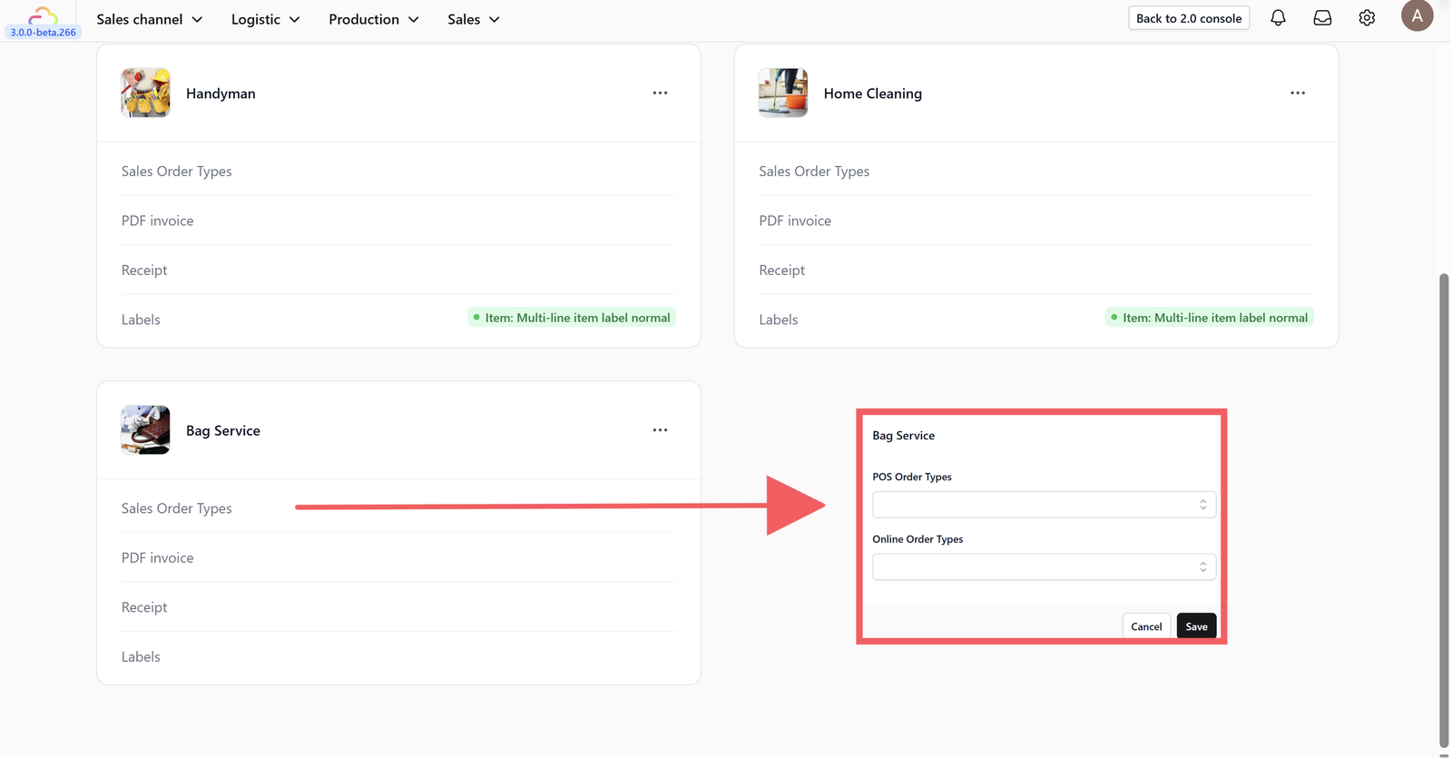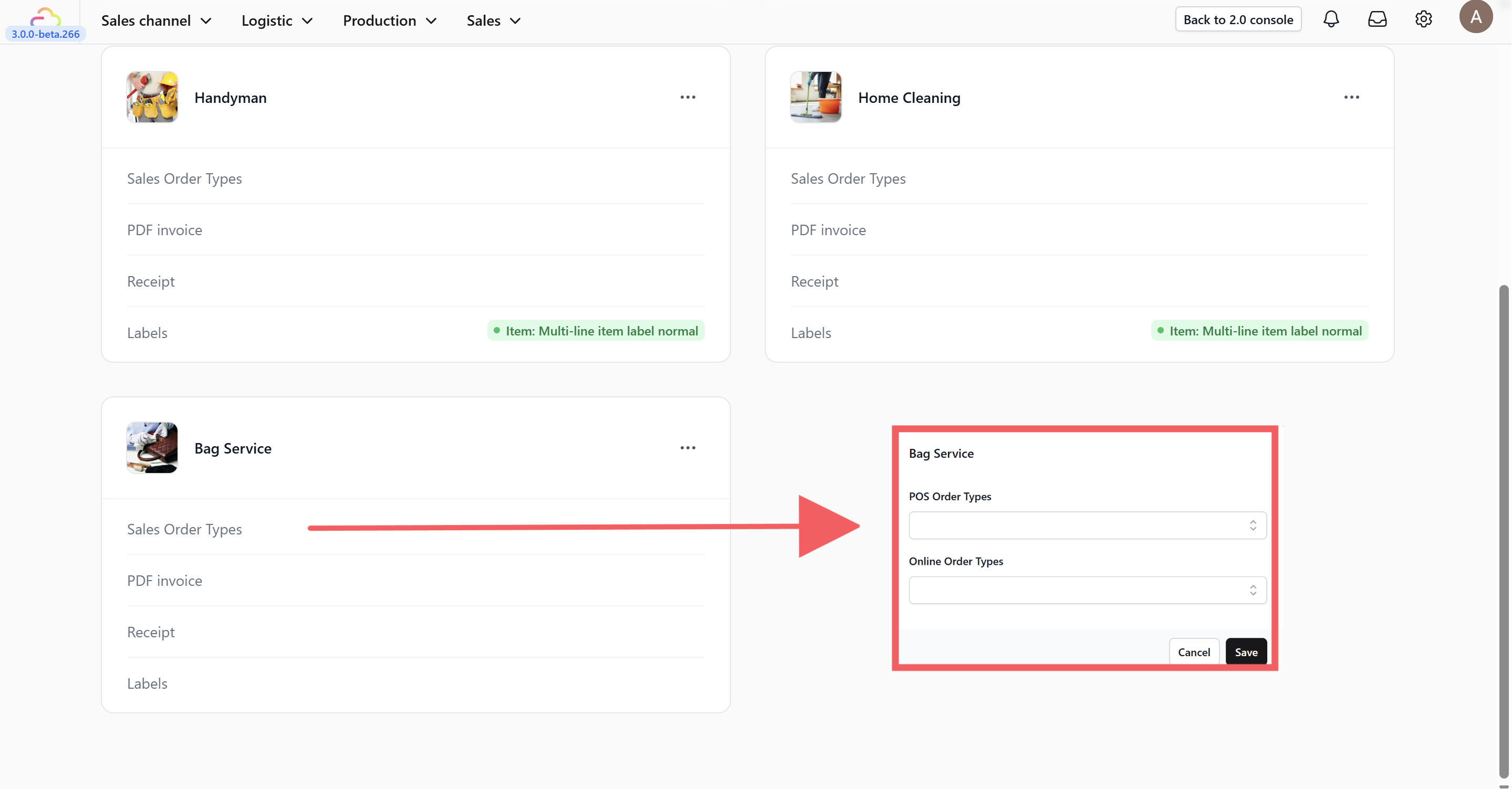 Select the order types for your POS or Online Store. Note that templates must be created before they can be selected.