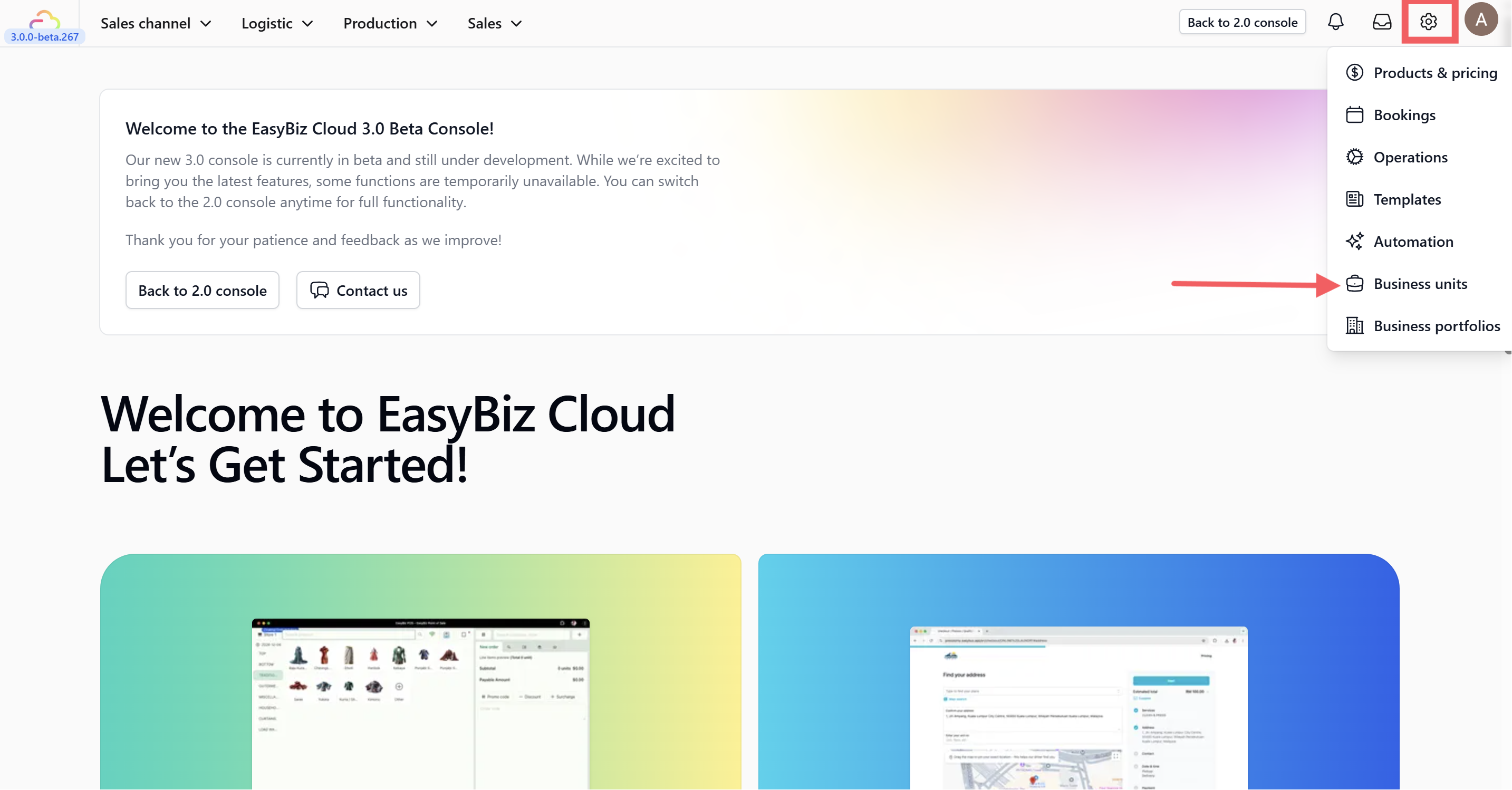 Once created, return to the 3.0 Console or use this link: Business Units Settings.