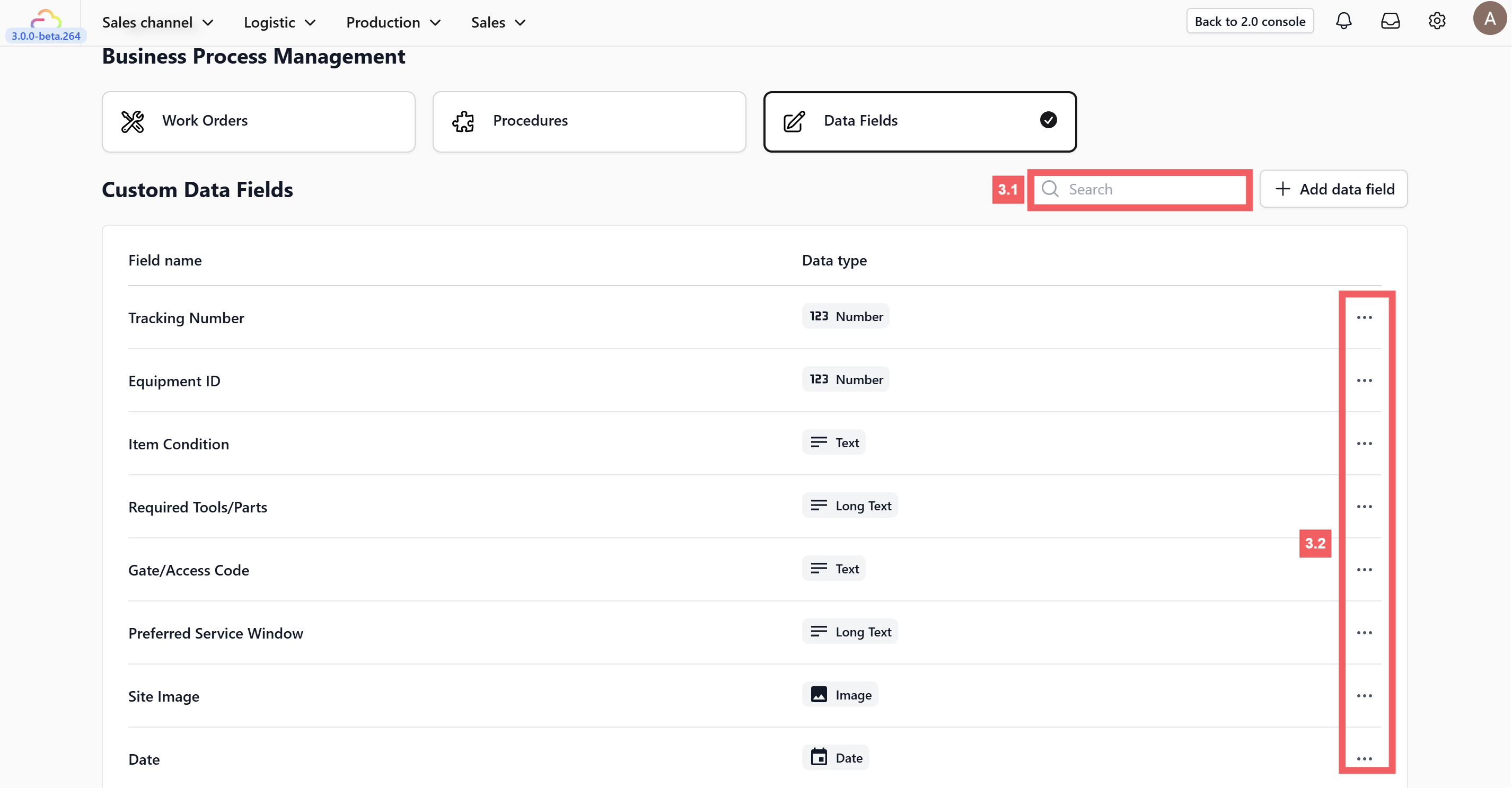 - 3.1 Search: Use the search bar at the top to quickly find a specific Data Field name.