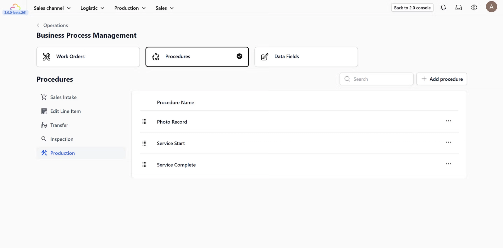 Procedures These are the individual steps your staff must complete. * Example: "Inspect item's condition" , "Photo Record" , or "Quality Control".