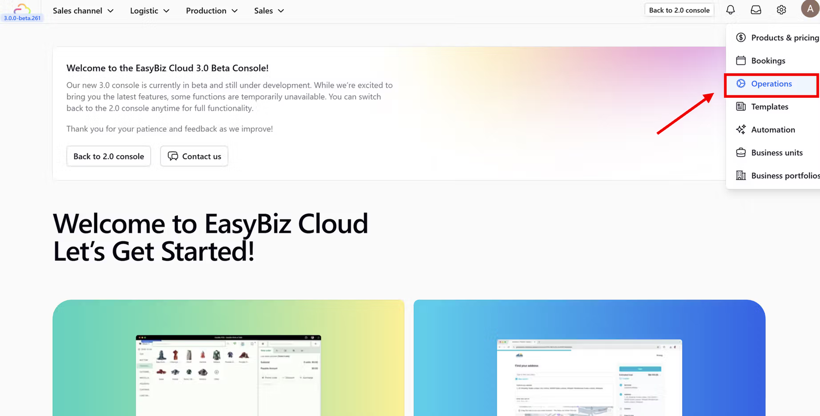Next, from the side menu options, select the Operations section.