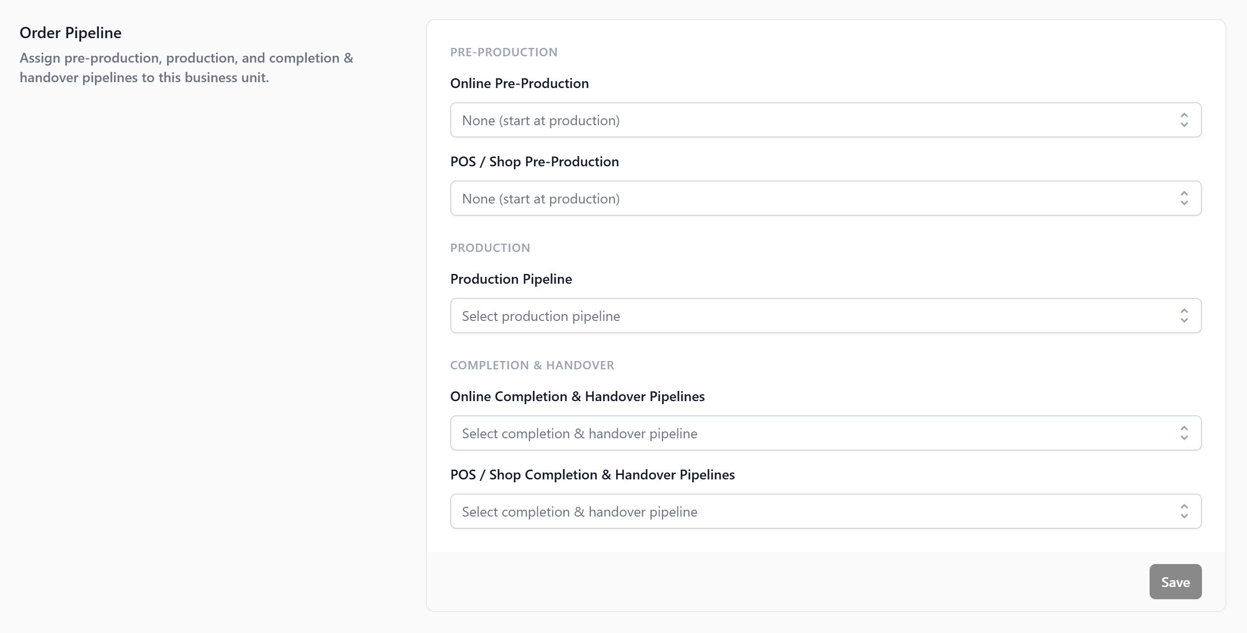 Without a Pipeline, your staff cannot see what stage an order is in, customers cannot be notified when their order is ready, and the POS will not let staff select store pickup or home delivery at checkout.