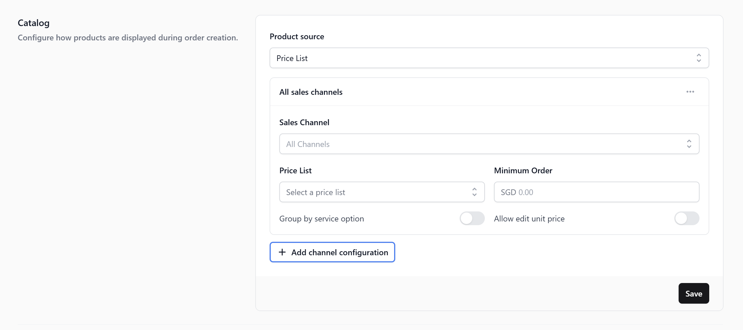 - Minimum order -> the minimum order value for this channel (e.g. SGD 40). Set to $0.00 if you do not want one.