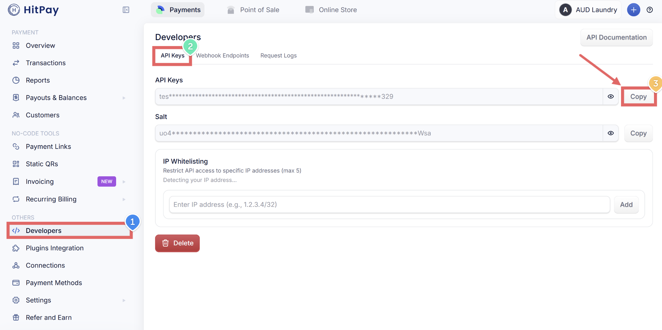 - In your HitPay dashboard, click Developers in the left menu