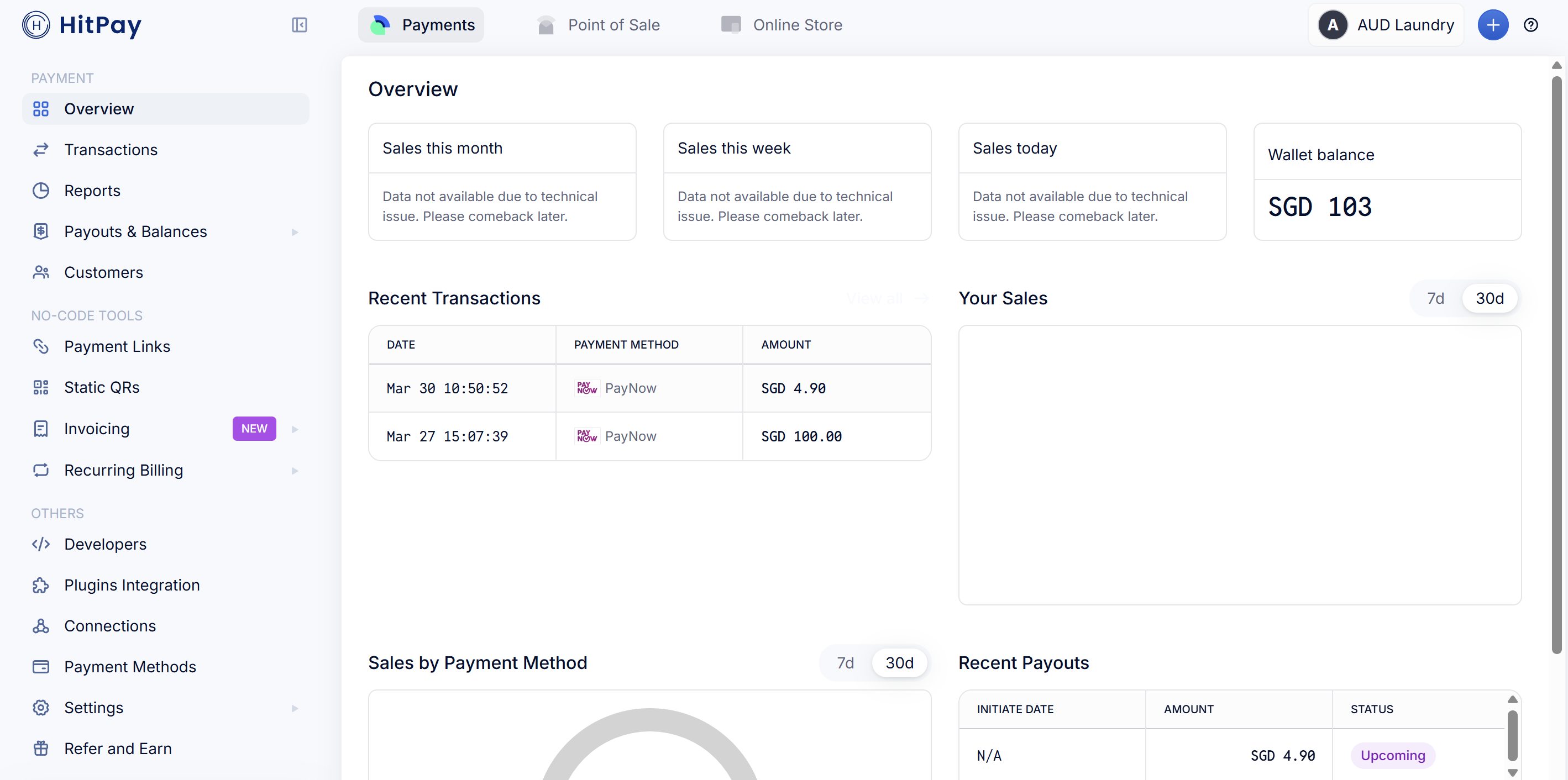 This is how your HitPay dashboard looks