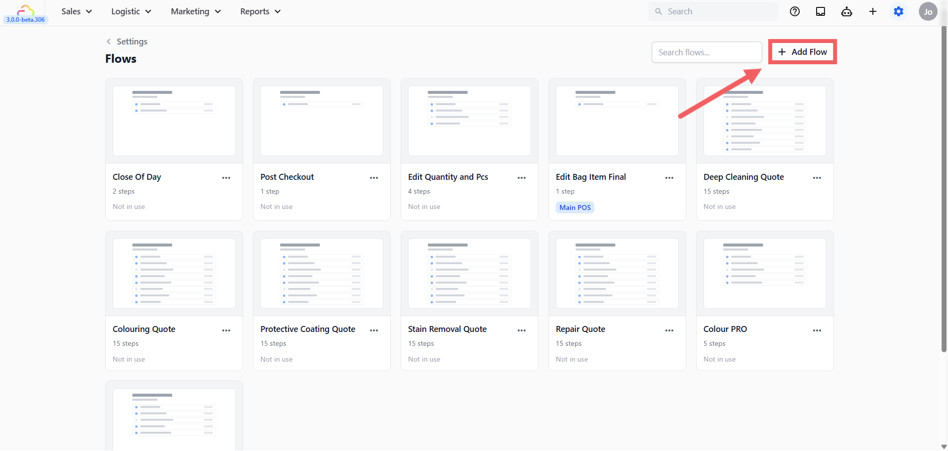 - Click + Add Flow