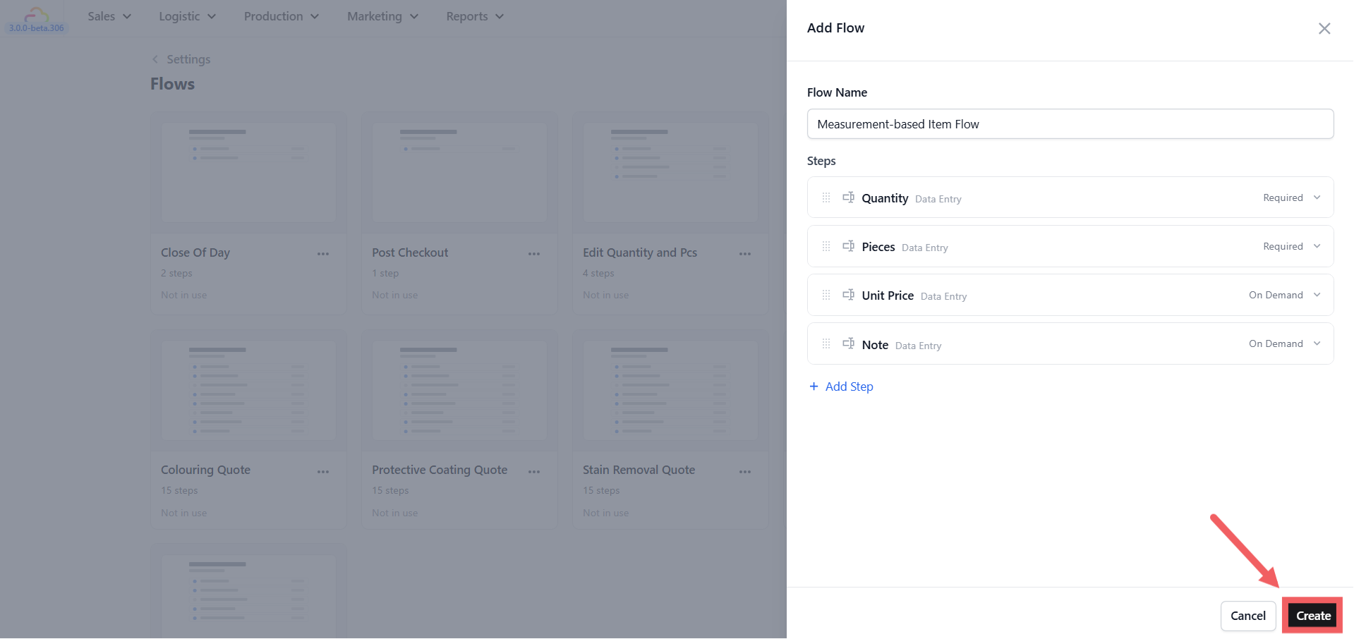 Not every item is priced per piece. Laundry is sometimes charged by weight, curtains by square footage, rugs by length. Each of these needs staff to capture a measurement at the counter before a price can be calculated. A Line Item Flow handles this consistently, whatever the unit β and it also tells the system how many labels to generate for that order line.