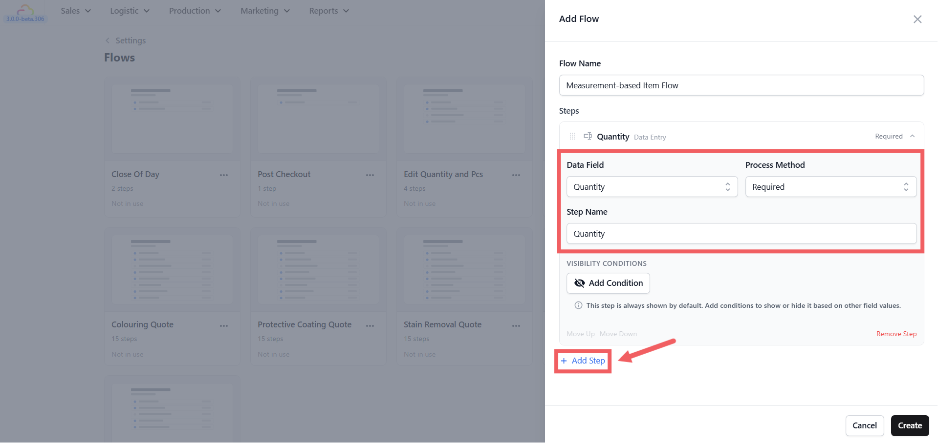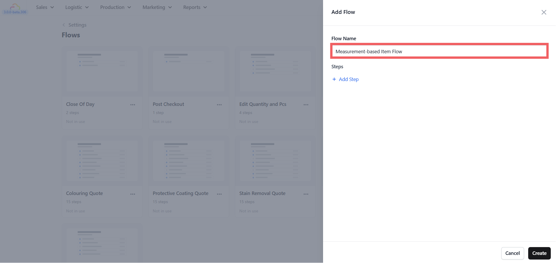 - Give the flow a clear name. A general name like 'Measurement Flow' works well if you plan to use it for many items.
