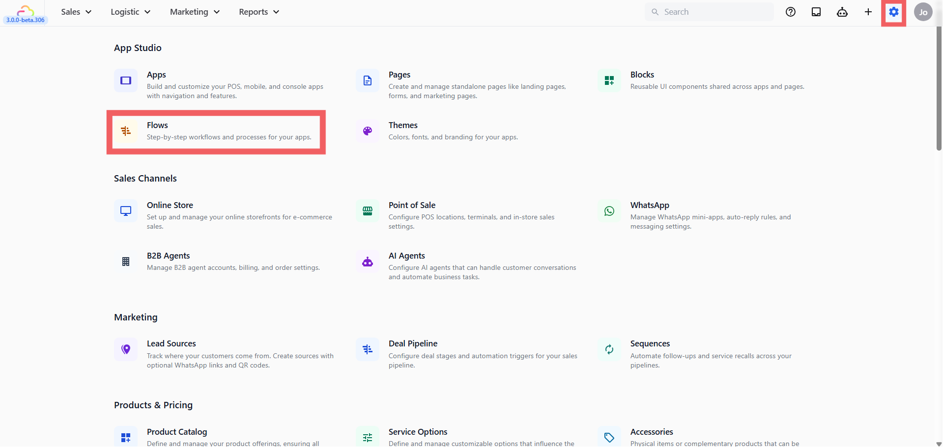 - In the App Studio section and click Flows