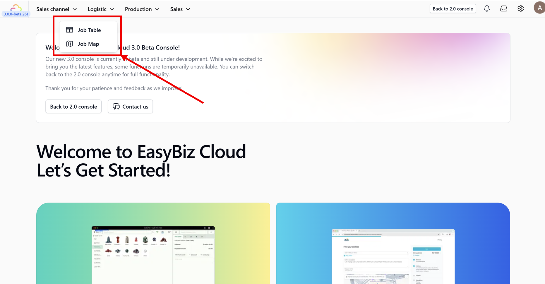 A dropdown menu will appear offering two views for tracking your jobs: Job Table and Job Map.