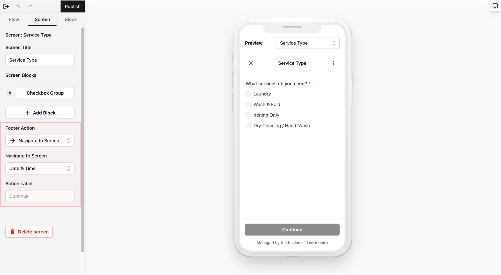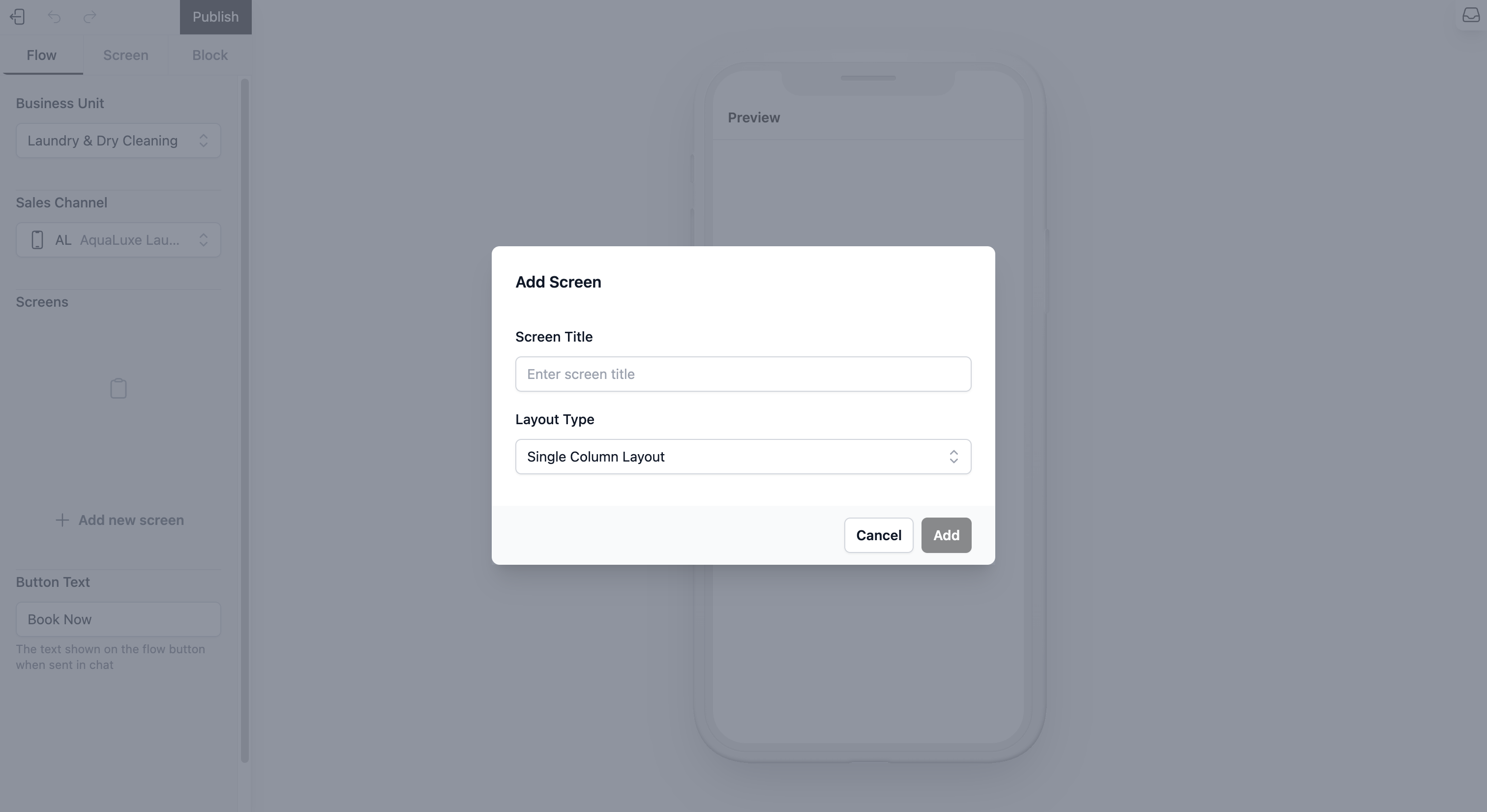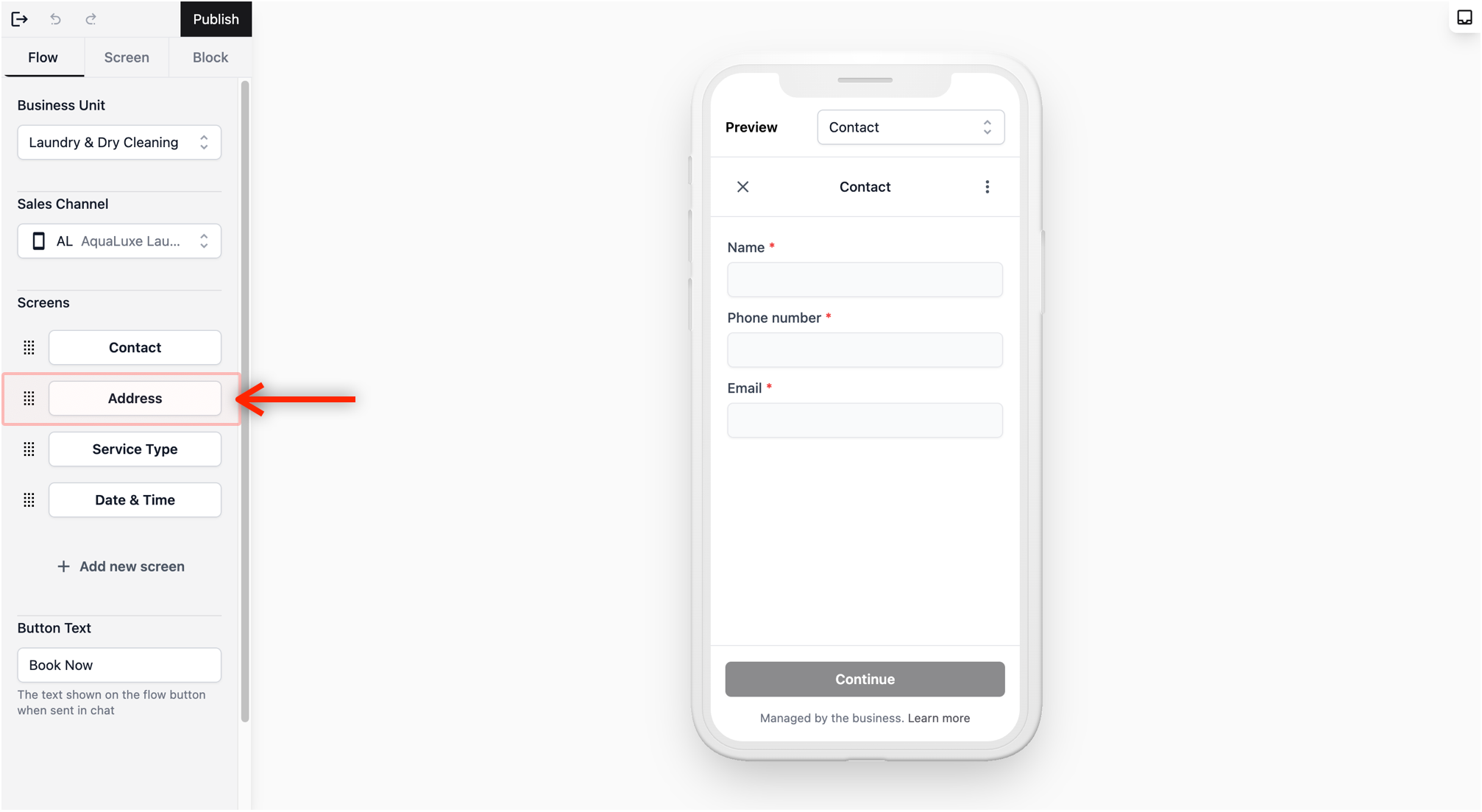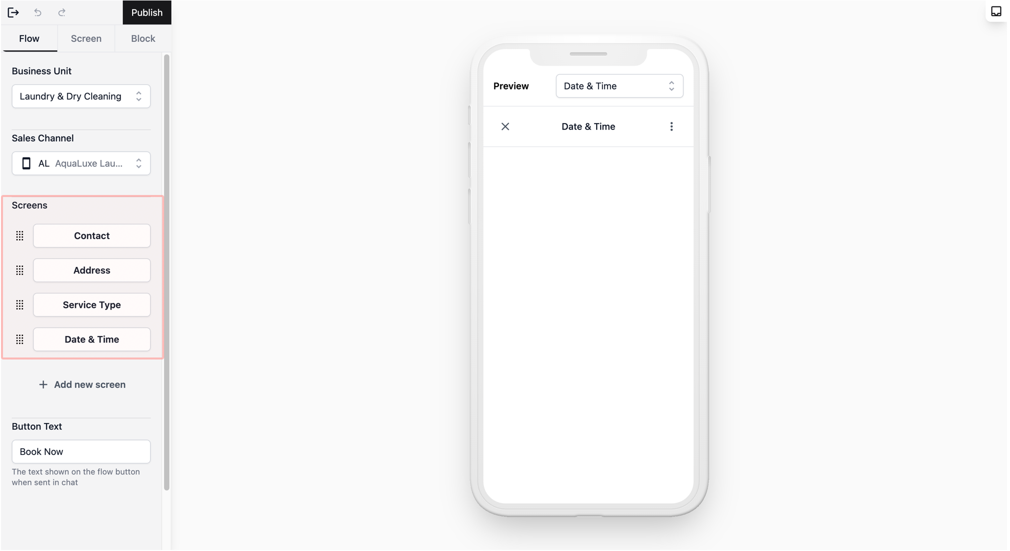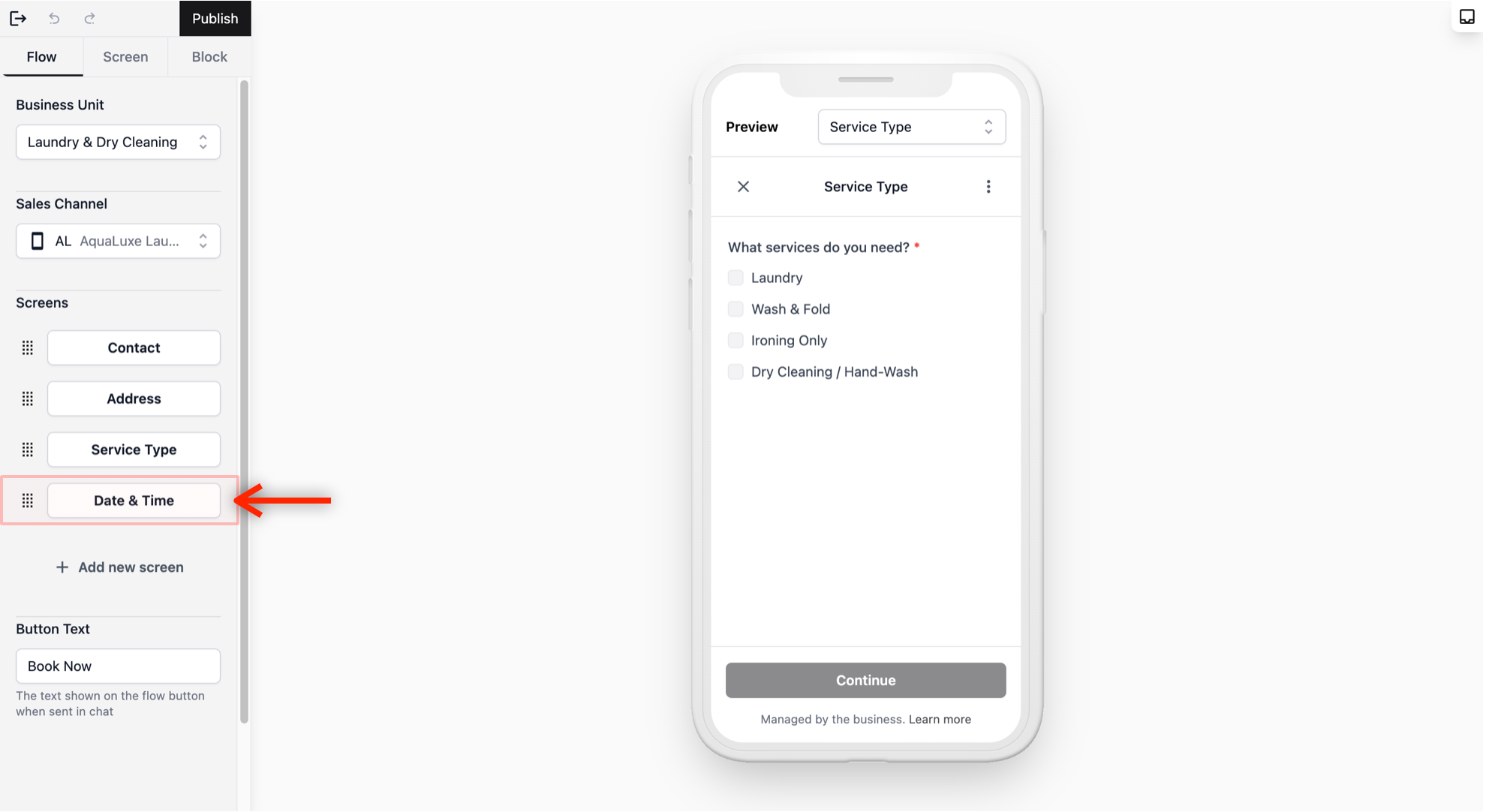 Now that you have created a new Mini App, the next thing to do is to build the booking process your customers will follow to schedule a laundry pickup.