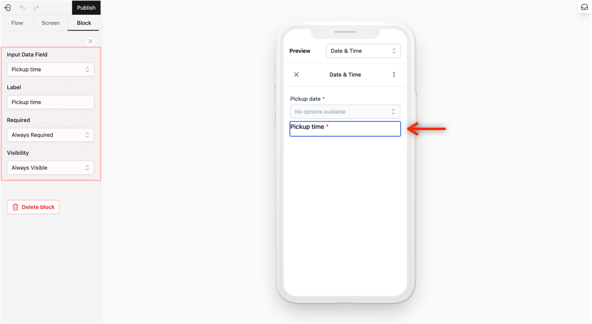 • Label: Leave it as default or give it a meaningful name like "Pickup time."