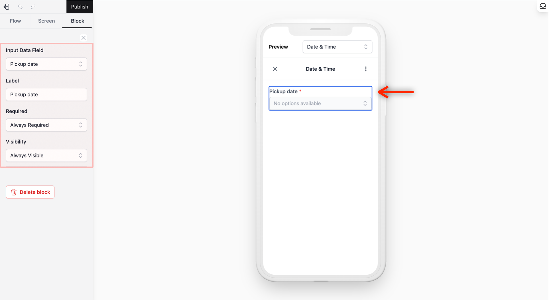 • Label: Leave it as default or give it a meaningful name like "Pickup date."