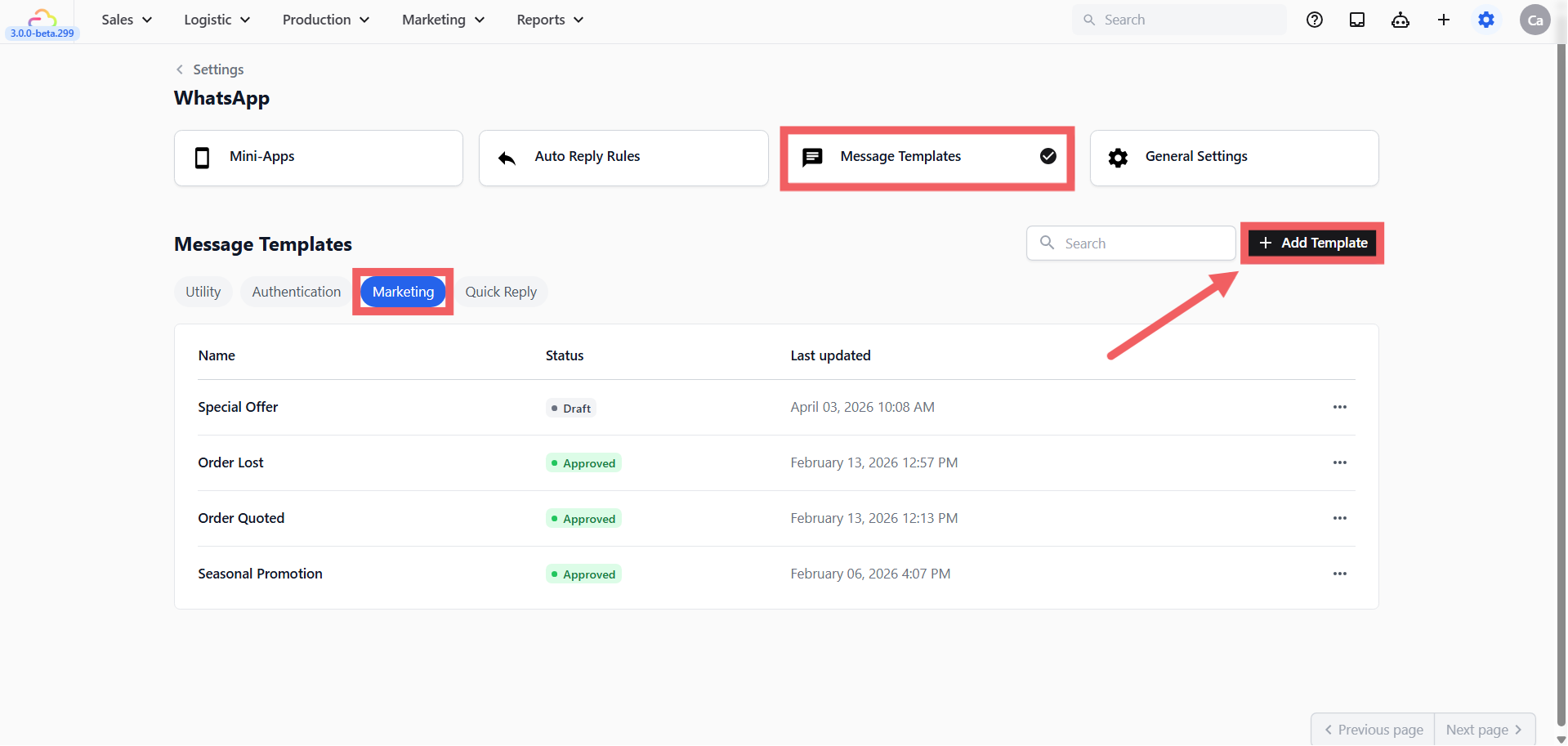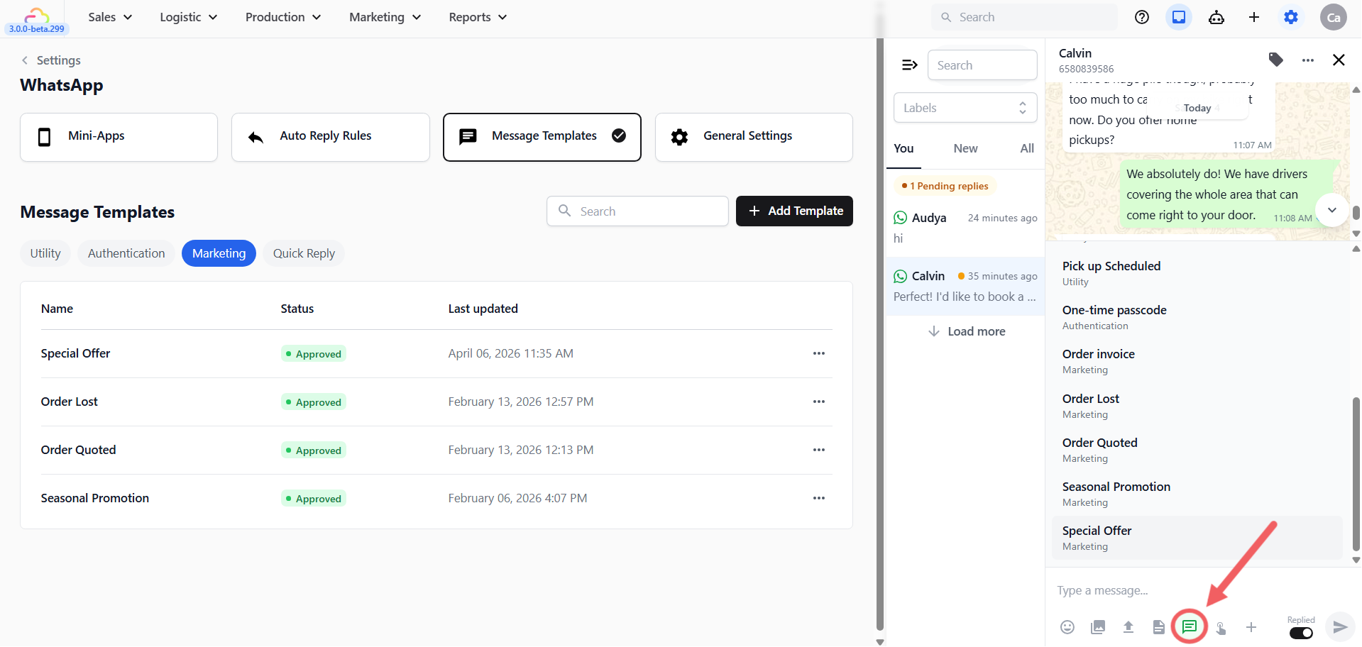 - Go to your Message Templates just like in Method 2, but this time select either the Utility (for order updates/delivery reminders) or Marketing (for promotions and offers) bubble.