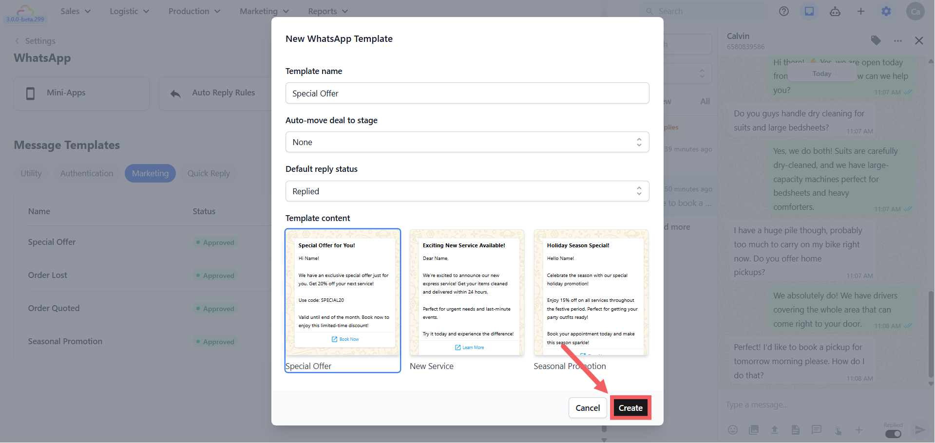 - Select your approved Marketing or Utility template.