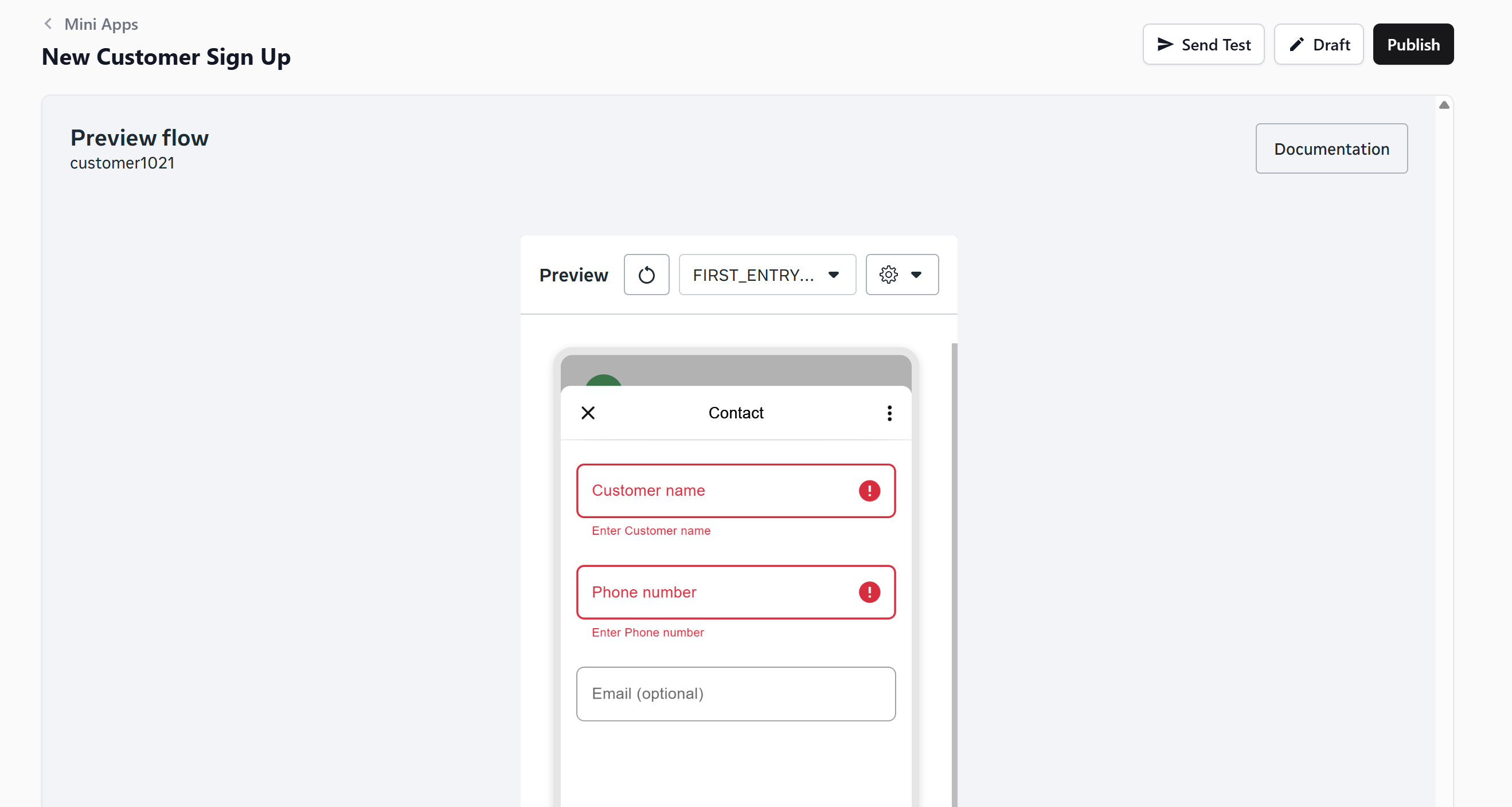 Setting Up a Customer Sign Up Mini App