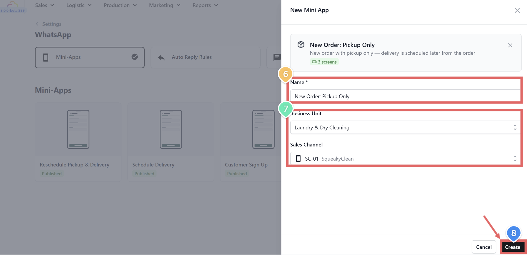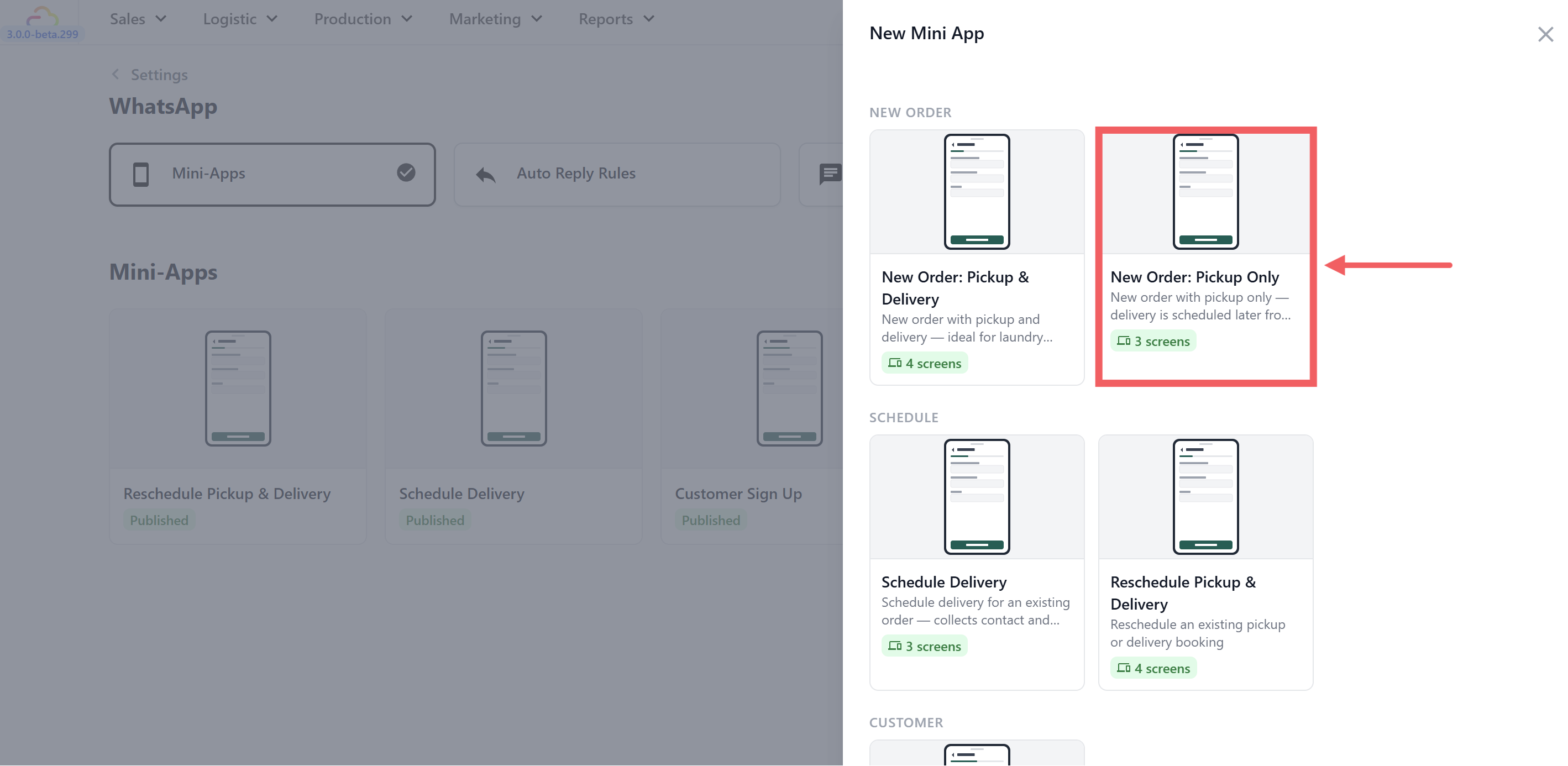 Setting Up a Schedule Delivery Mini AppSchedule the return delivery of a completed order by sending customers a booking form directly on WhatsApp.