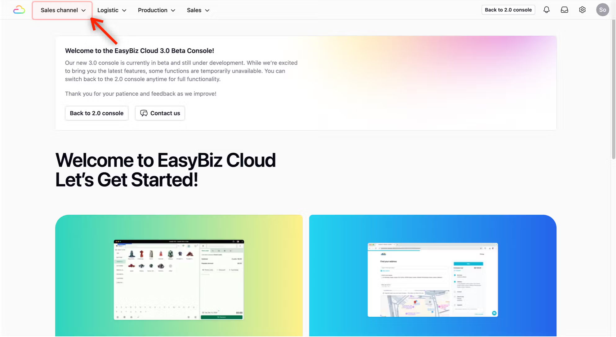 - From the top navigation bar, click on Sales channel.