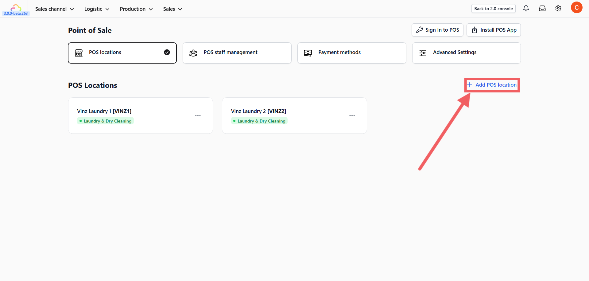 3. Click the + Add POS Location button.