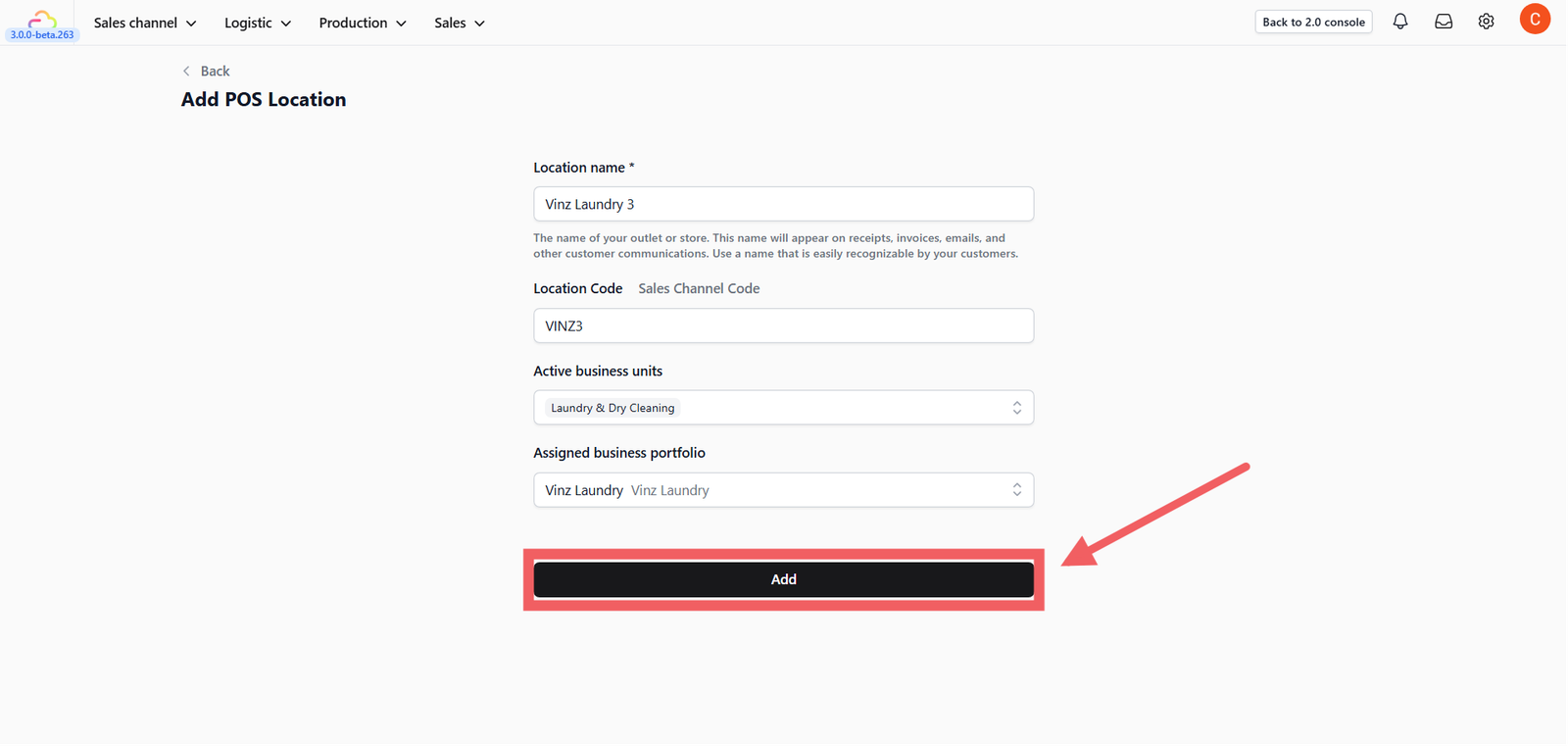 - Assigned Business Portfolio: Link this location to the correct business entity (e.g., "Vinz Laundry"). This determines which product lists and pricing tiers are available at this store.