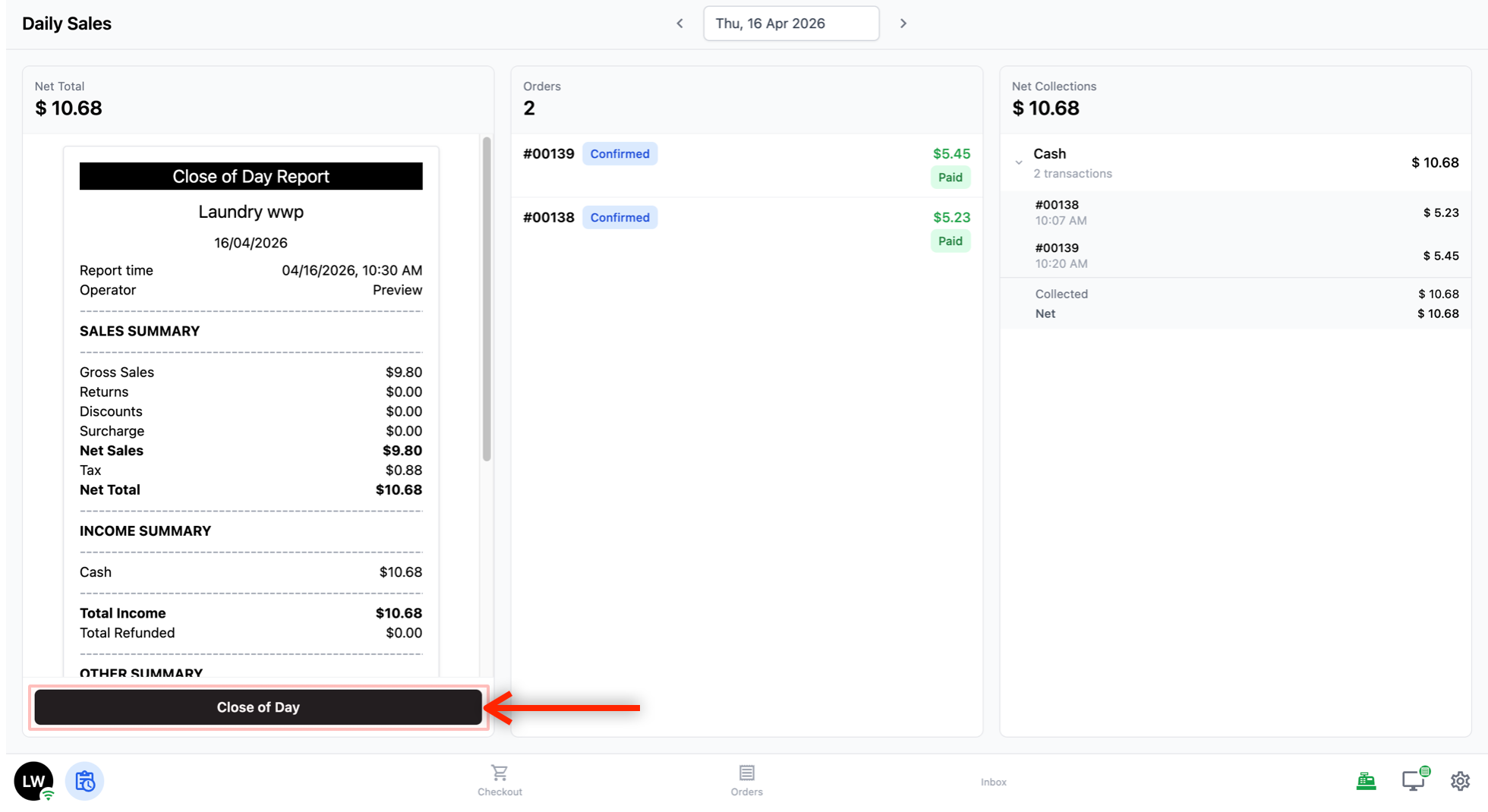 Once signed, tap Close of Day to complete the process.