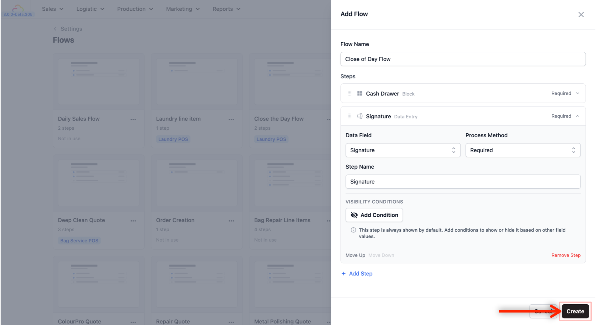 Step 1: Create a Close of Day Flow