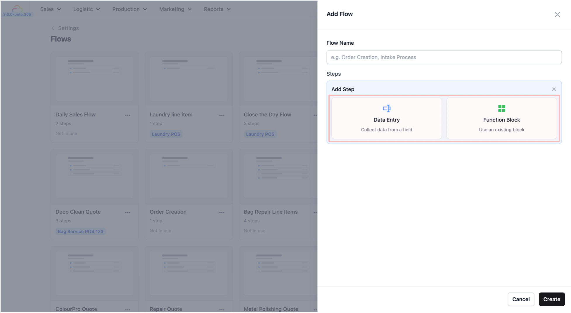 - Once both steps are added, click Create to save your new flow.