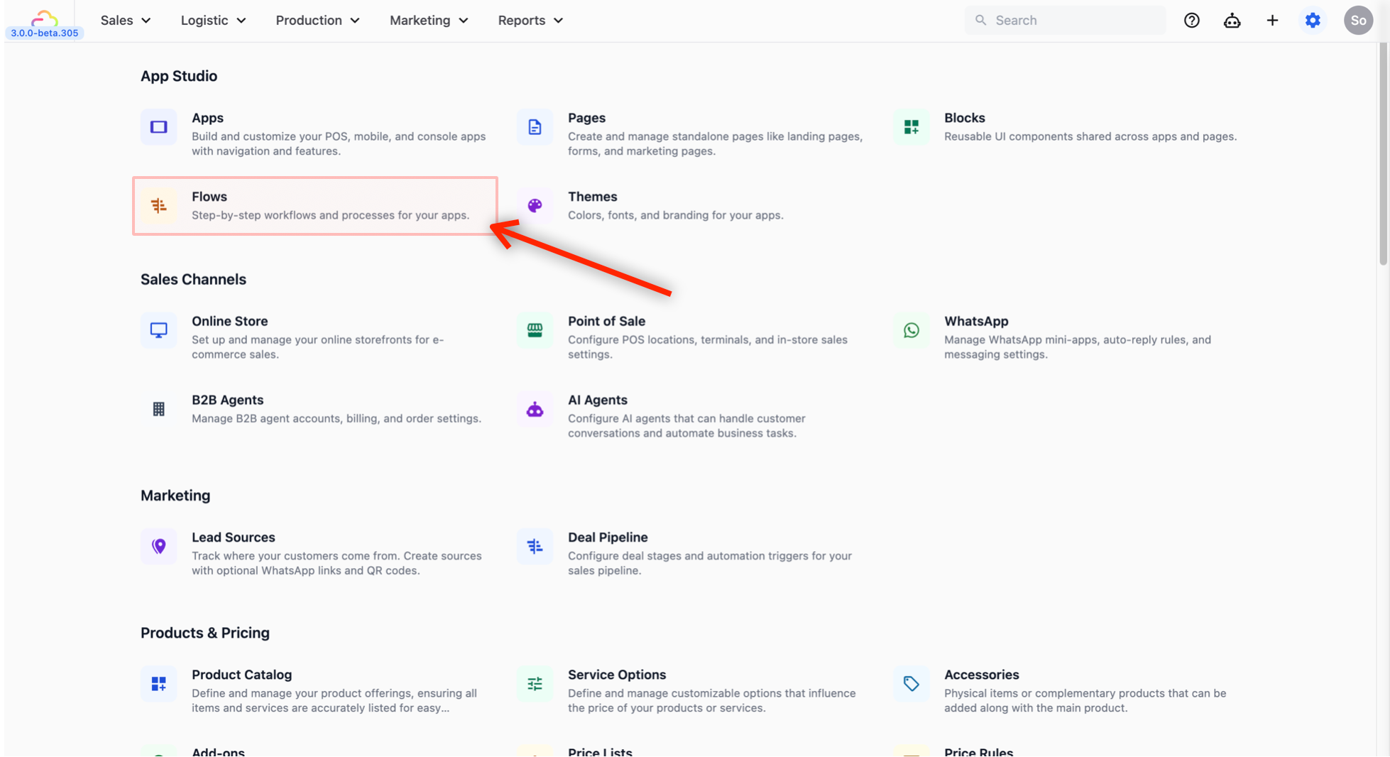- Under App Studio, select Flows.