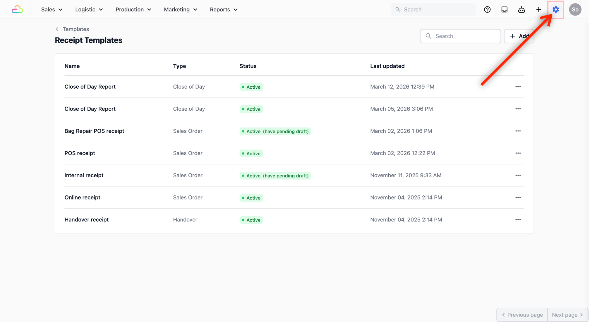 - Set the Close of Day Receipt Template to the receipt template you published earlier.