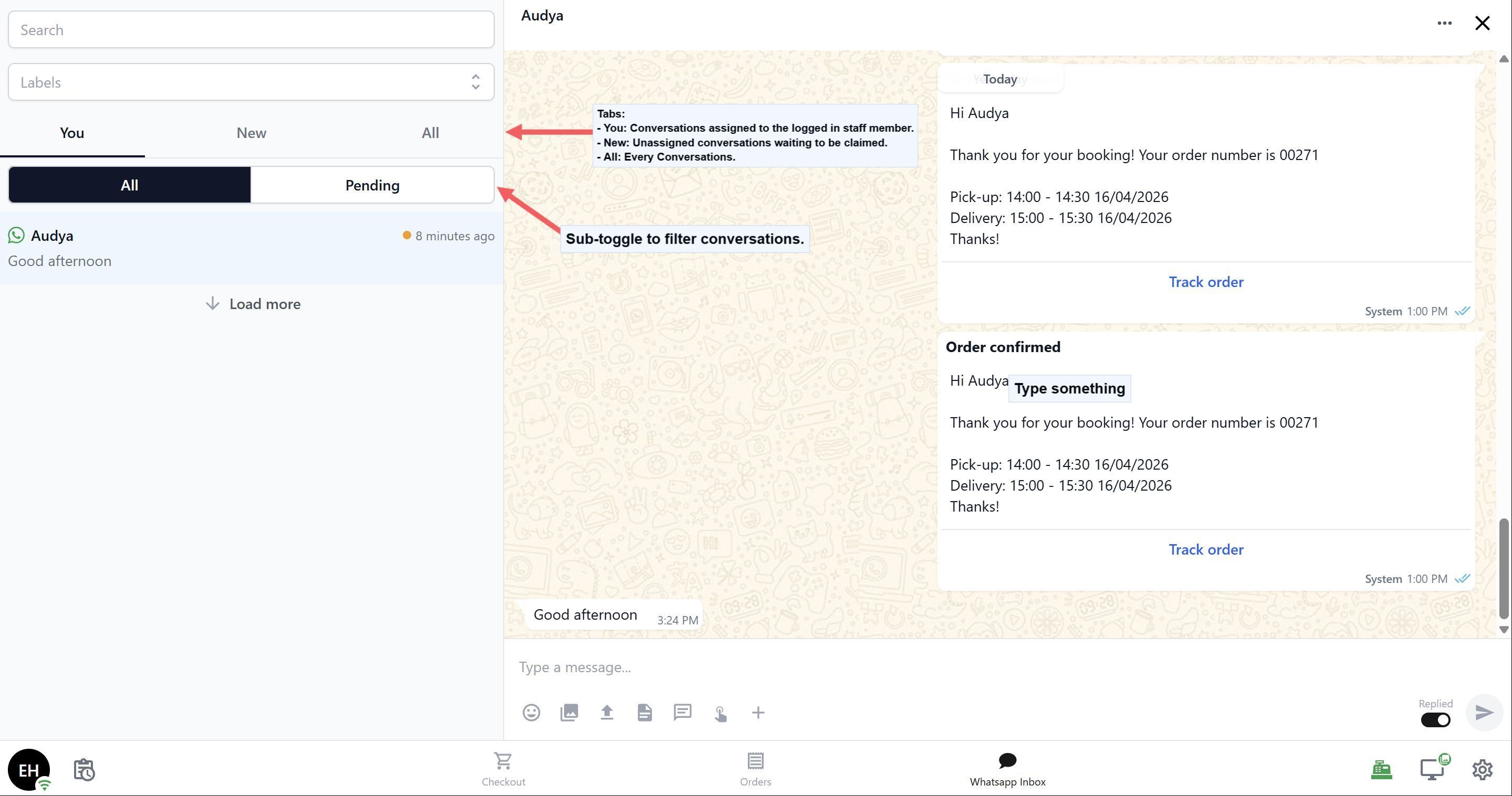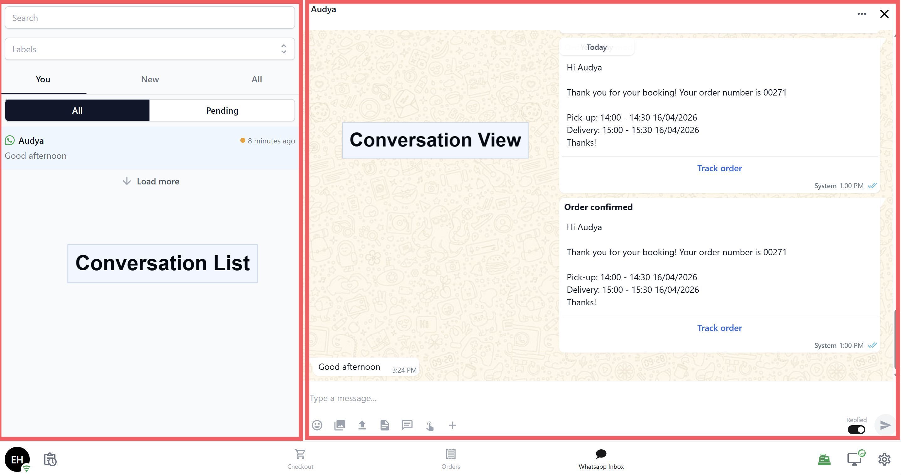 Without the Inbox, your staff would need a separate phone or browser tab open just to check WhatsApp messages. That means switching back and forth, missing messages during busy periods, and no easy way to know which conversations have been handled.
