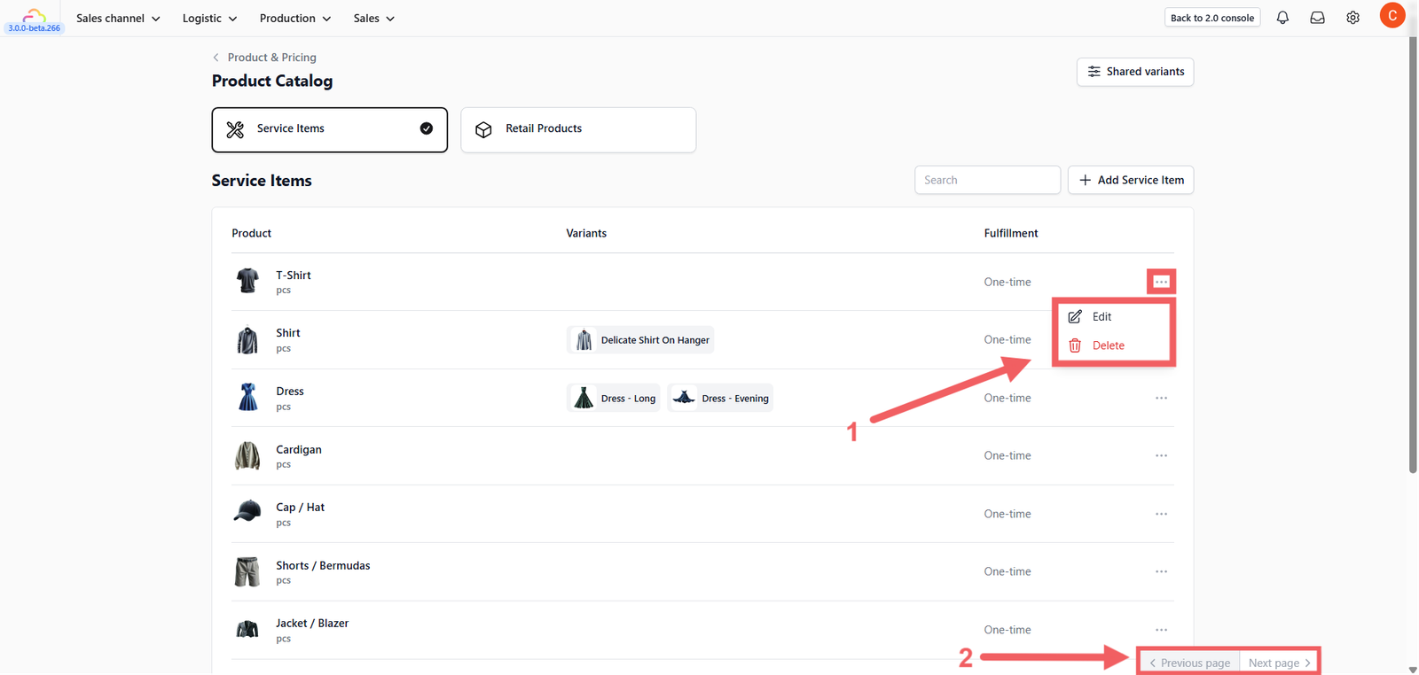 - Pagination: If you cannot find an item, check the bottom right corner to toggle between pages (Previous / Next).